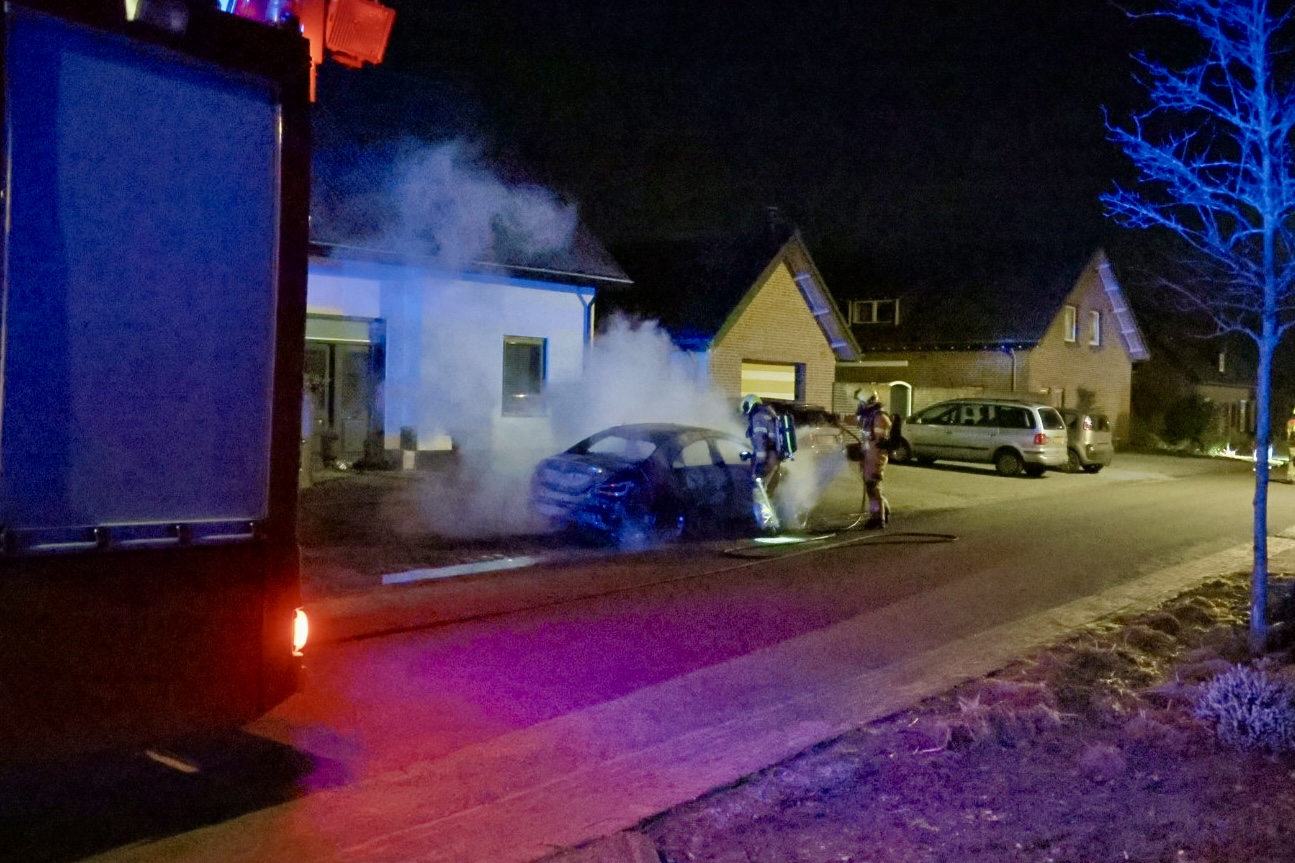 De eigenaren van de auto werden opgevangen in een brandweerbusje. Voor zover bekend raakte niemand gewond.
