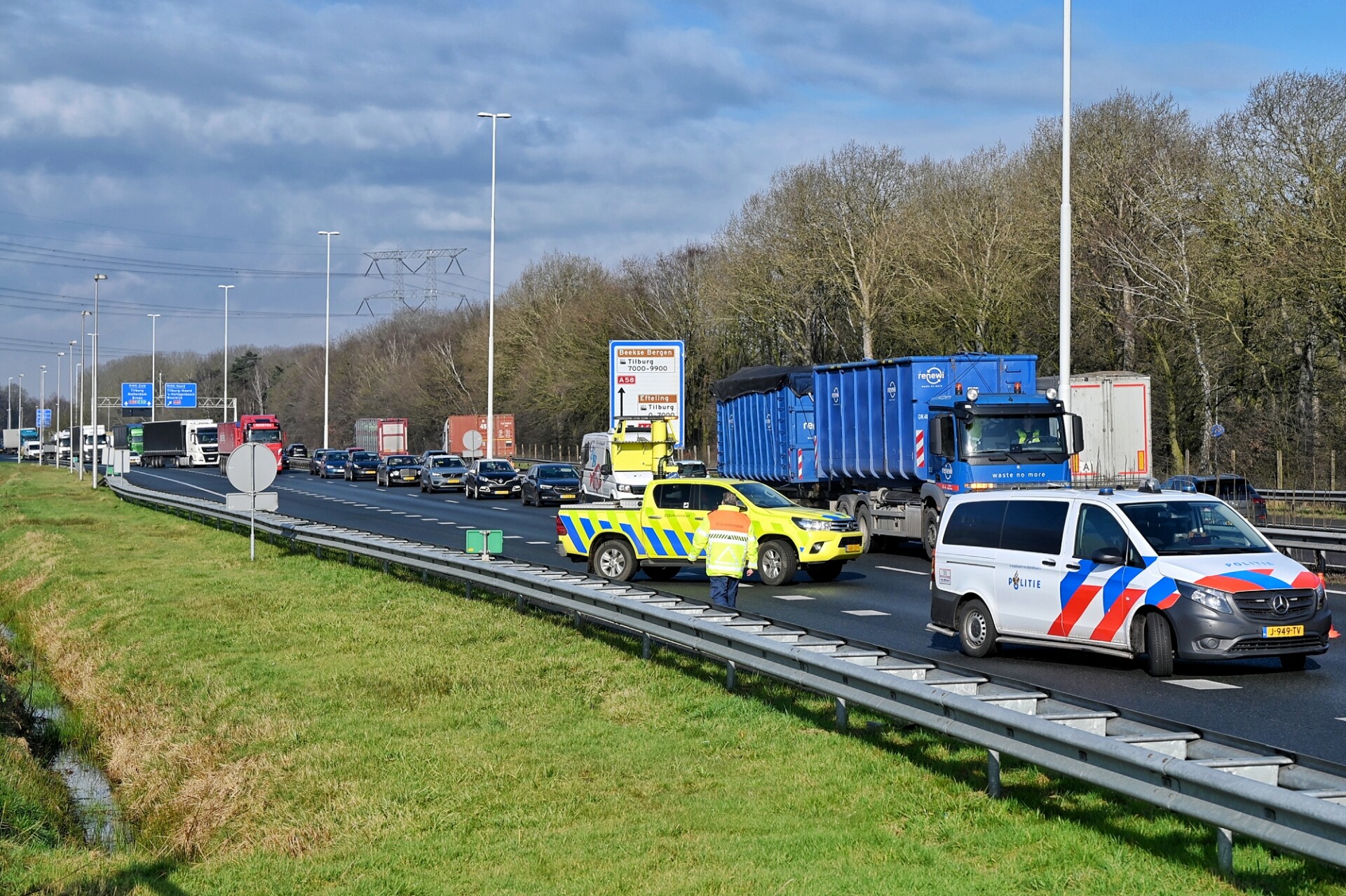 Voor de bergingswerkzaamheden is één rijbaan in de richting van Moergestel afgesloten.
