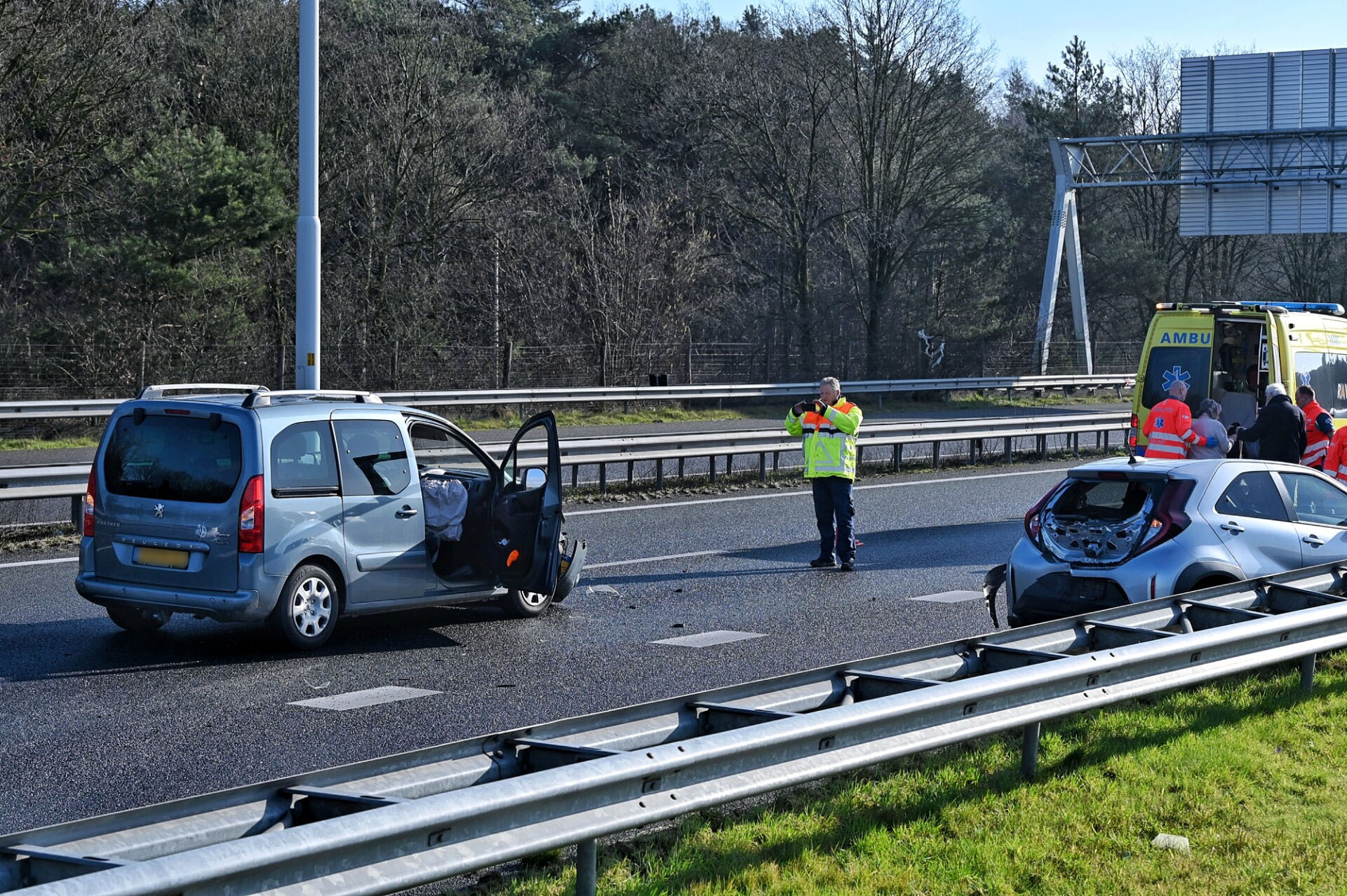 MOERGESTEL – Woensdagochtend rond 10:10 uur heeft een aanrijding plaatsgevonden tussen twee auto’s op de A58 ter hoogte van Moergestel. Door onbekende oorzaak botsten de voertuigen op elkaar, waarna de voorste auto tegen de vangrail terechtkwam.