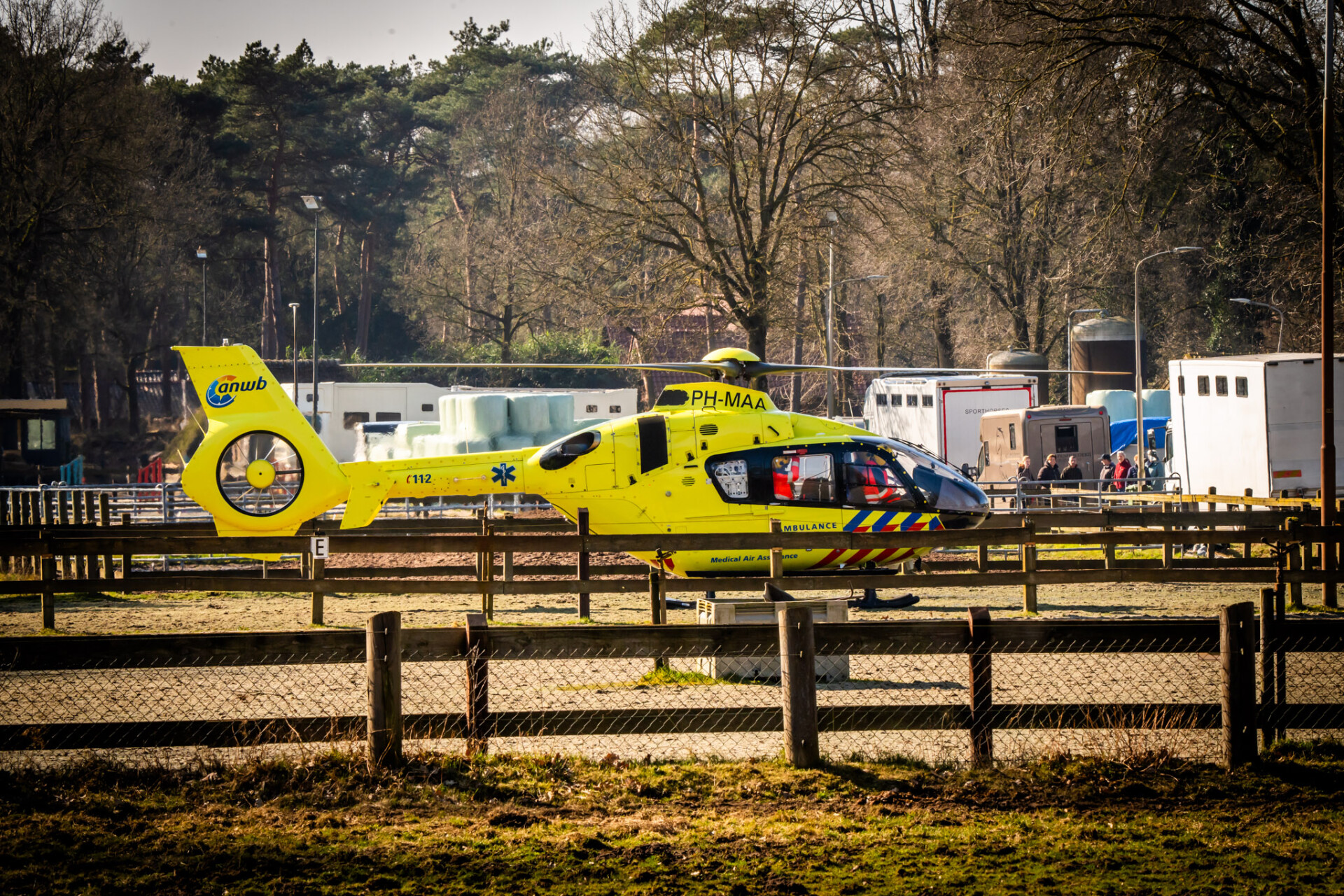 De hulpdiensten kwamen grootschalig ter plaatse, waaronder een ambulance en een traumahelikopter. Buiten de manege verzamelden zich veel toeschouwers terwijl de hulpverleners zich over het slachtoffer ontfermden.