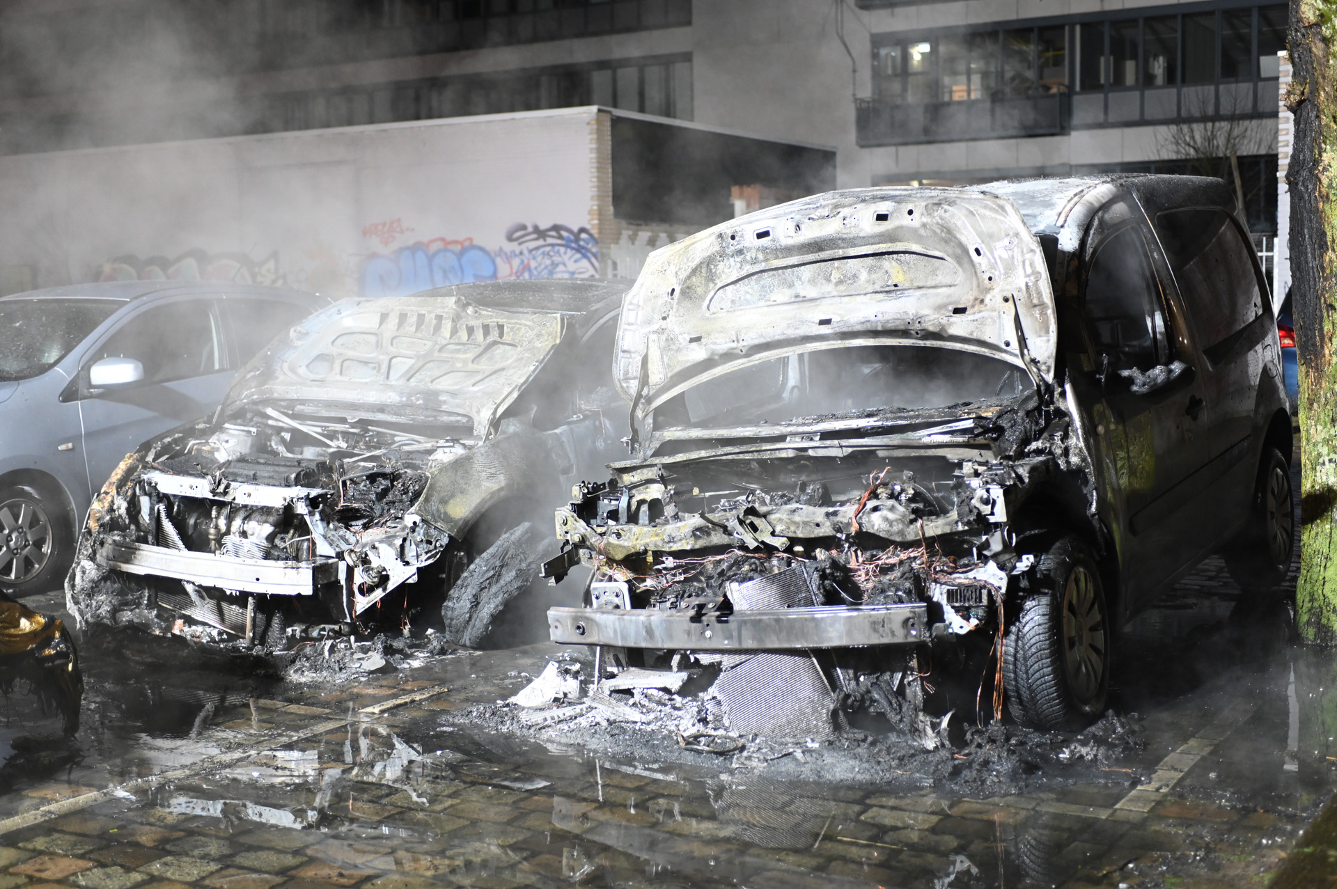 Twee auto’s volledig uitgebrand, mogelijk brandstichting
