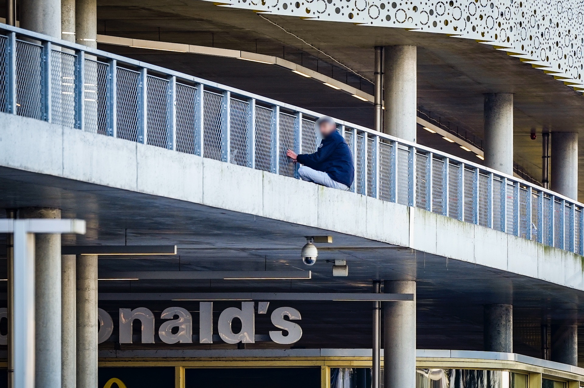 Man klimt op rand van parkeergarage Eindhoven Airport