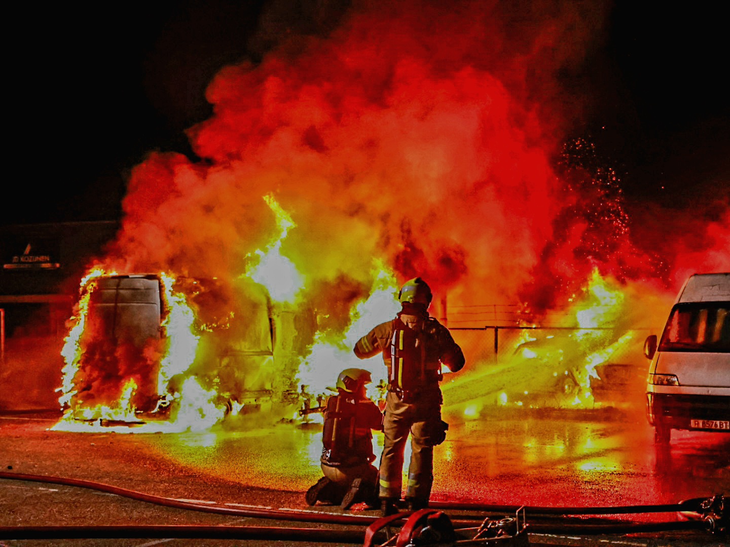 De brandweer kreeg de melding om 23:55 uur en schaalde al snel op naar middelbrand. Korps Zeeland en een waterwagen uit Heesch kwamen ter assistentie. De brand werd bestreden met drie tankautospuiten en twee waterwagens. Dankzij de snelle inzet kon overslag naar een nabijgelegen autobedrijf worden voorkomen.