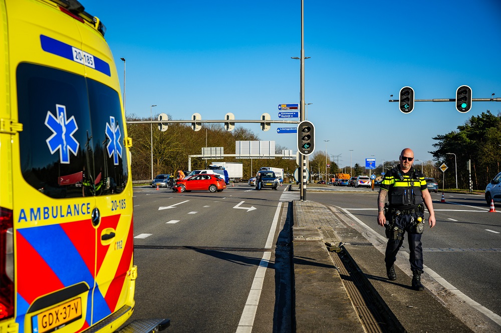 Mogelijk miste een van de voertuigen door de felle zon het rode stoplicht. Twee bergingsbedrijven takelden de beschadigde auto’s weg. Het verkeer ondervond tijdelijk hinder.