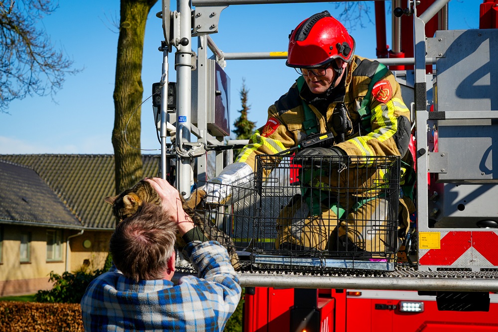 Kat door brandweer uit boom gered