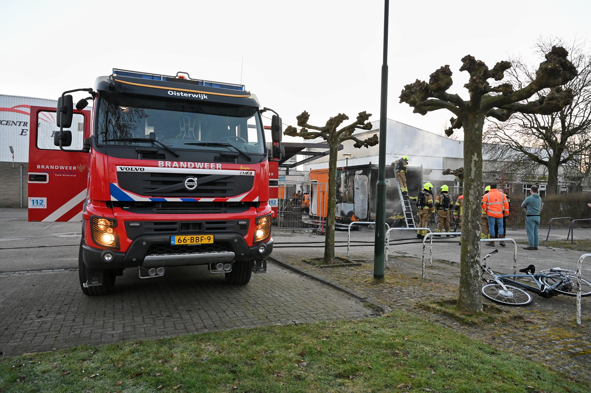 OISTERWIJK – Donderdagochtend rond 07:00 uur is een mobiel kantoor aan de Beardijk in Oisterwijk in vlammen opgegaan. De brand zorgde voor een grote zwarte rookpluim.