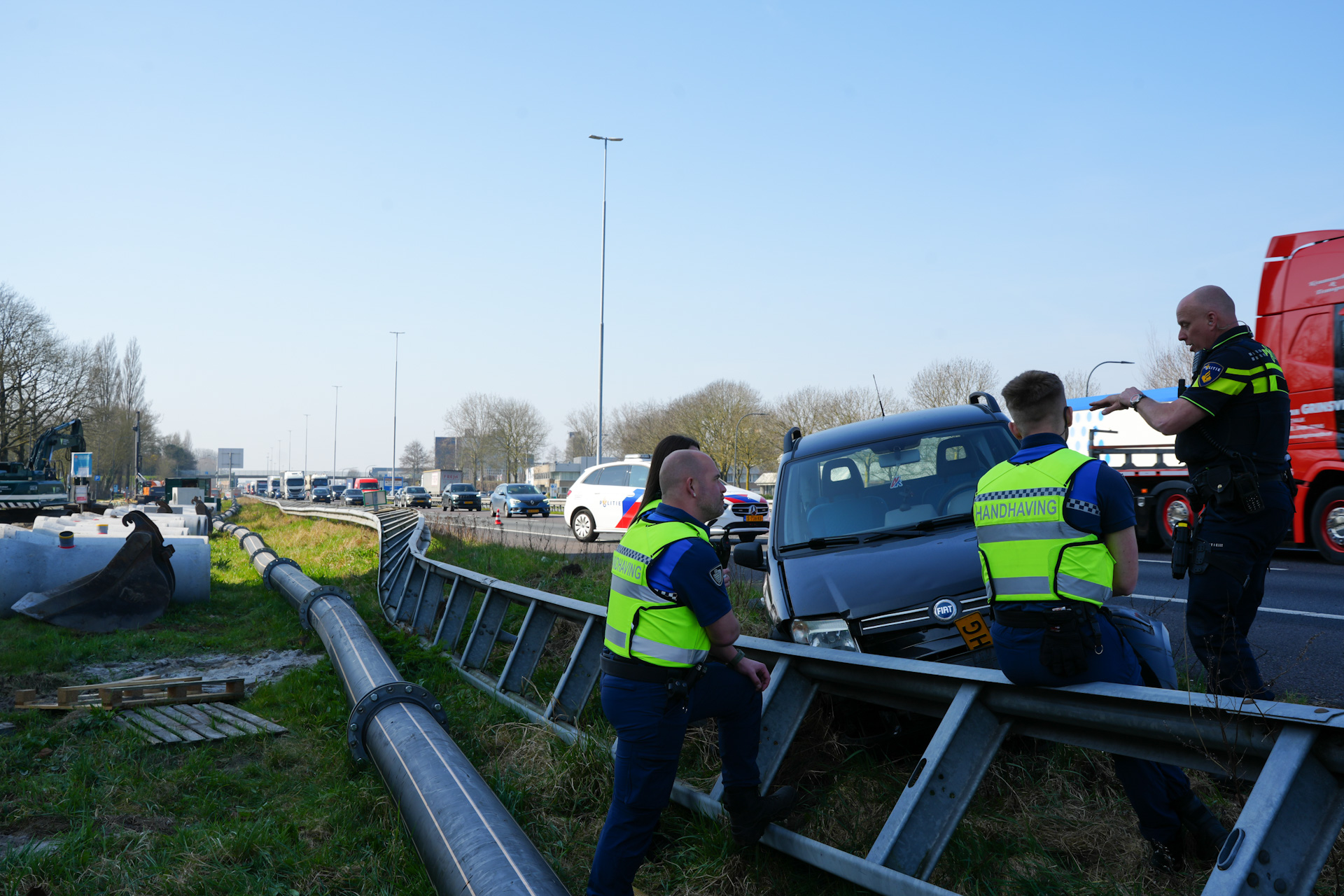 Auto crasht in vangrail op A59 na klapband, bestuurster ongedeerd