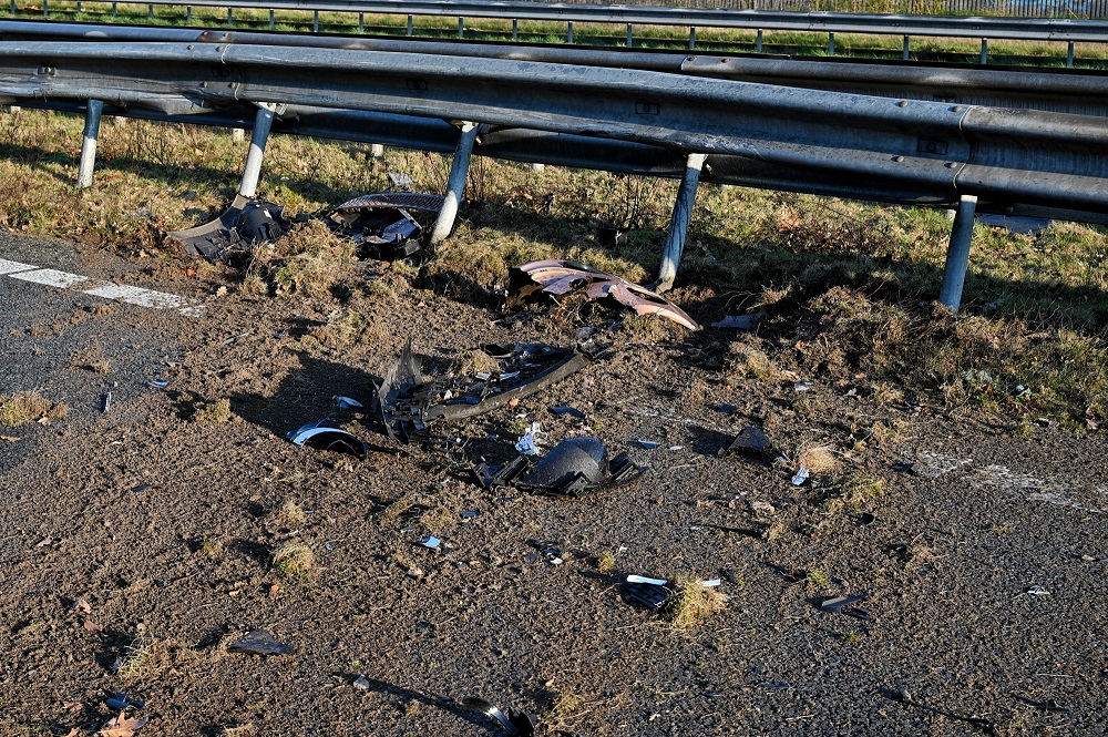 Beide voertuigen begonnen te tollen en botsten tegen de vangrail. Een vrouw is met onbekend letsel naar het ziekenhuis gebracht. De bestuurder van de zilverkleurige auto is aangehouden voor rijden onder invloed en had geen geldig rijbewijs.