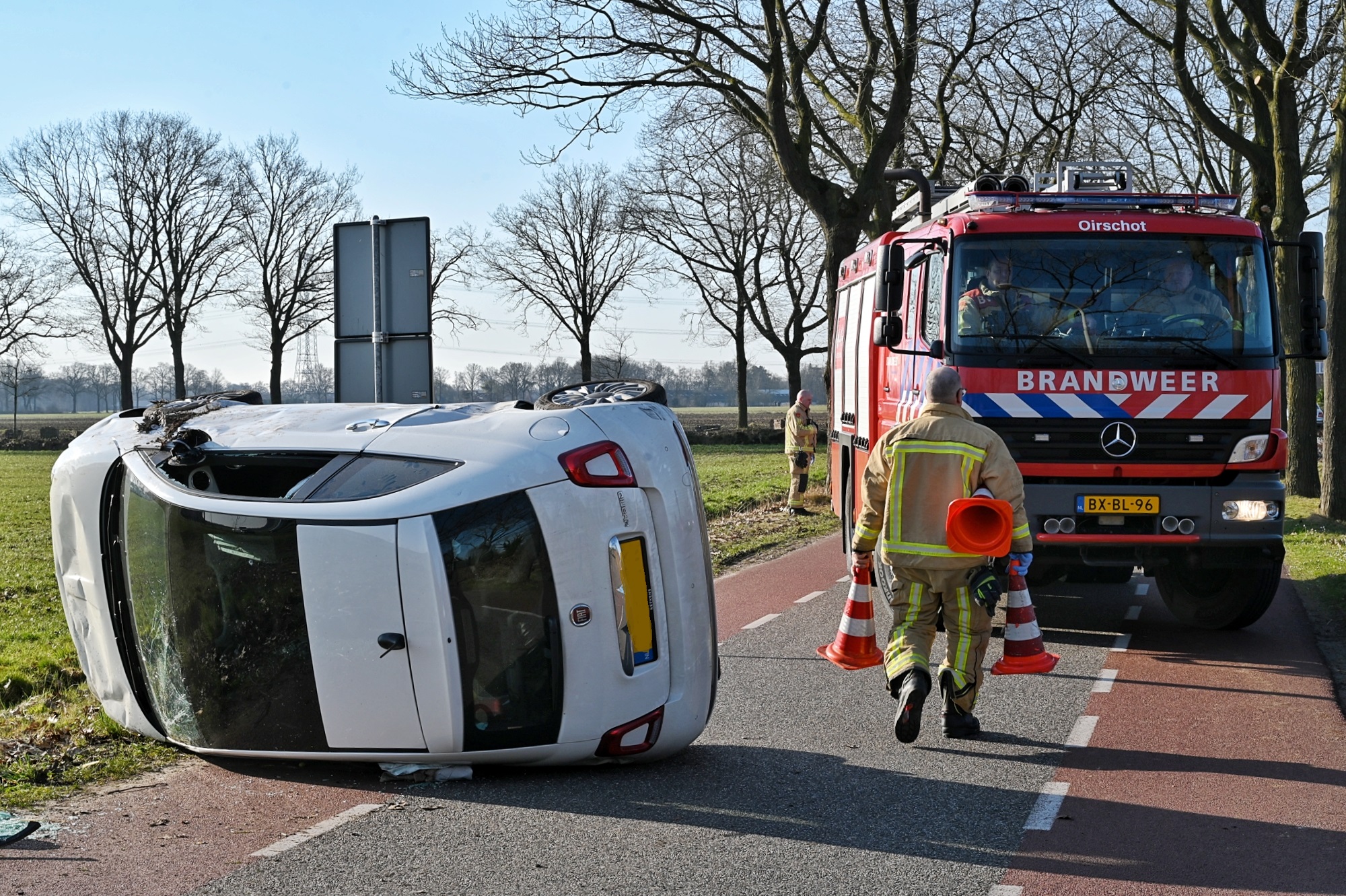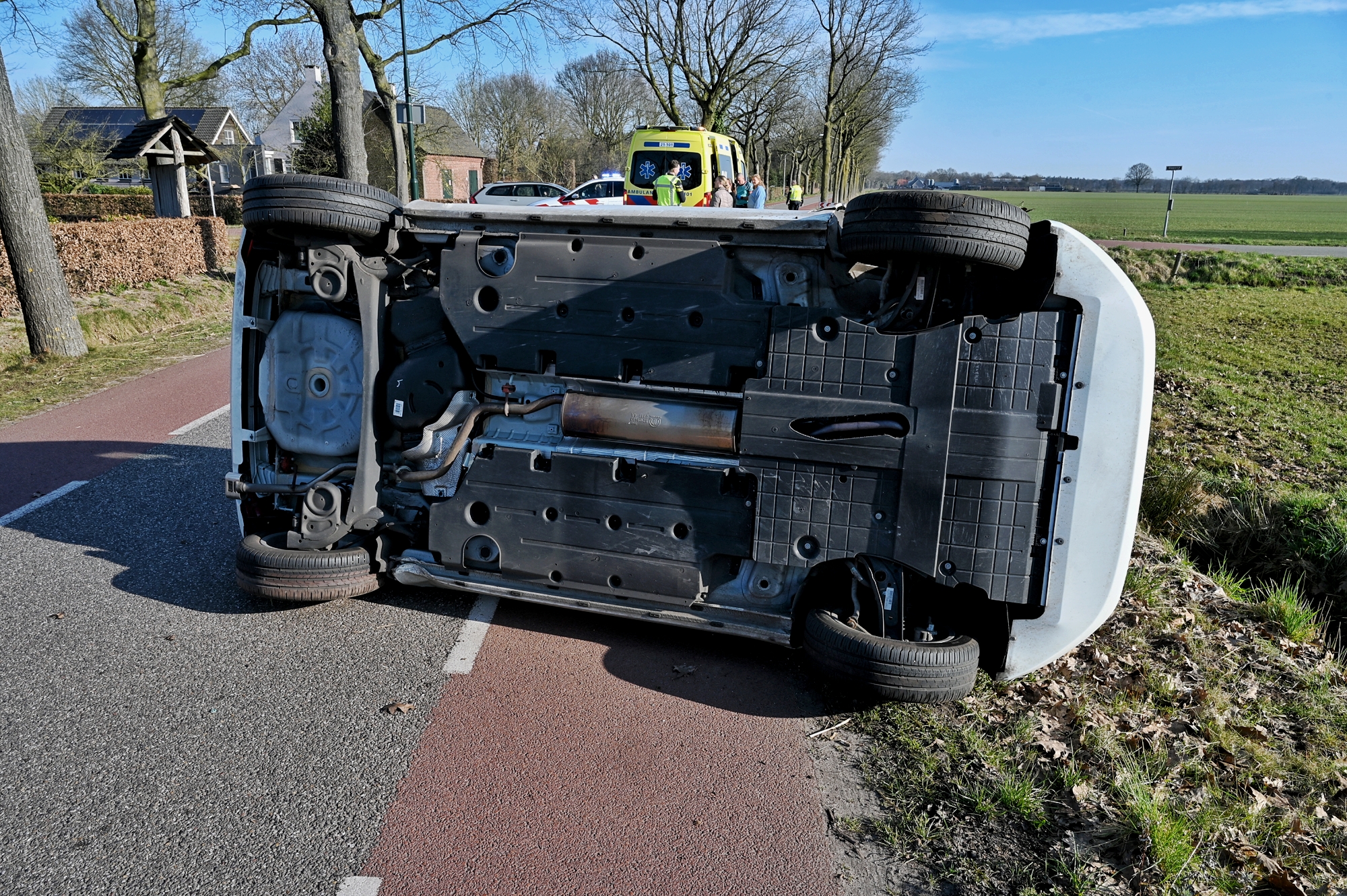 Een bestuurster zag de ander over het hoofd, waarna een auto meerdere keren over de kop sloeg en op zijn kant tot stilstand kwam. Politie, brandweer en ambulance kwamen ter plaatse.