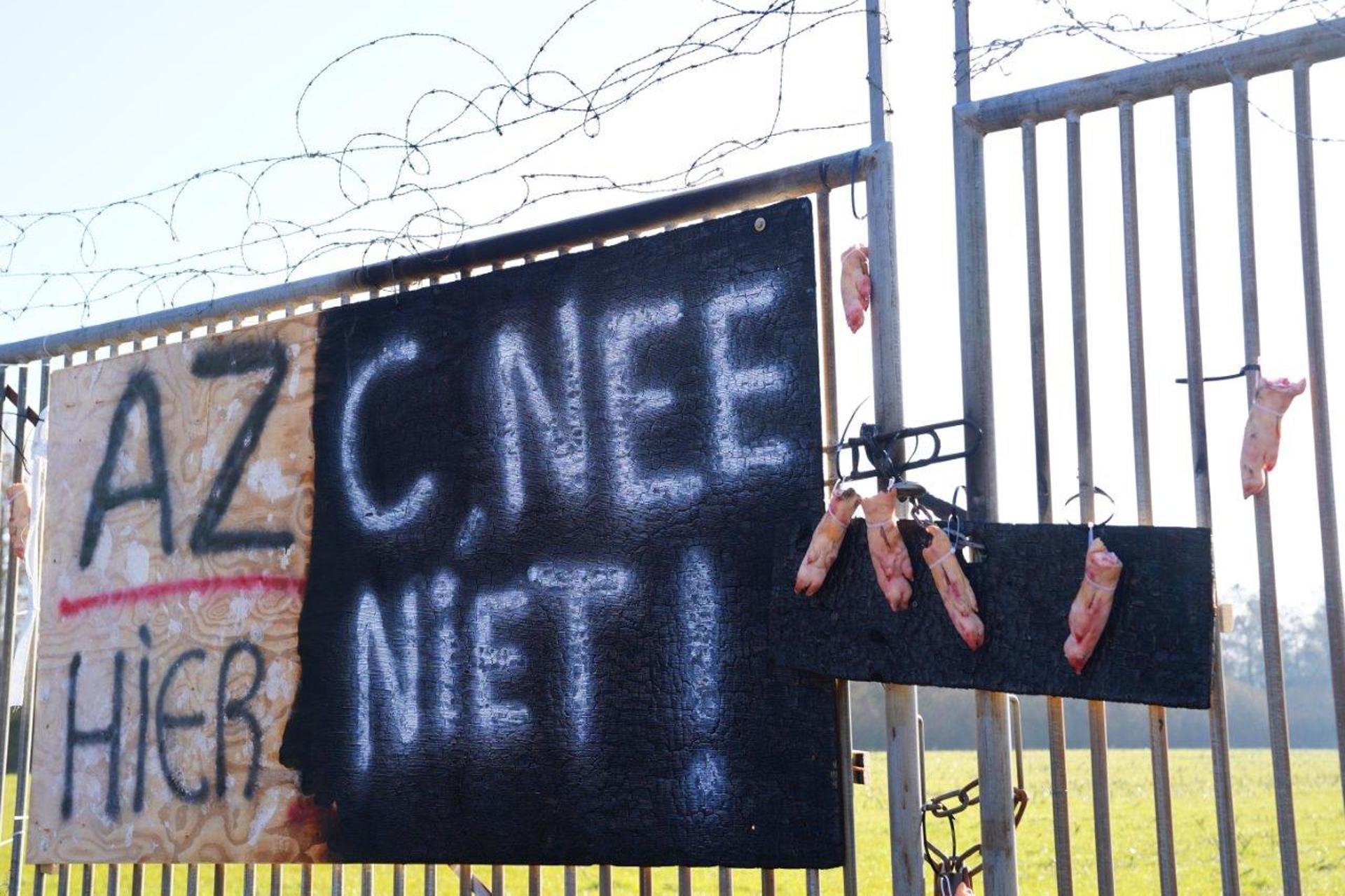 BERLICUM – Op het terrein aan de Runweg, waar de gemeente Sint-Michielsgestel overweegt een asielzoekerscentrum te openen, zijn varkenspoten aan een hek gehangen. De gemeente is inmiddels begonnen met het opruimen van de achtergelaten resten.