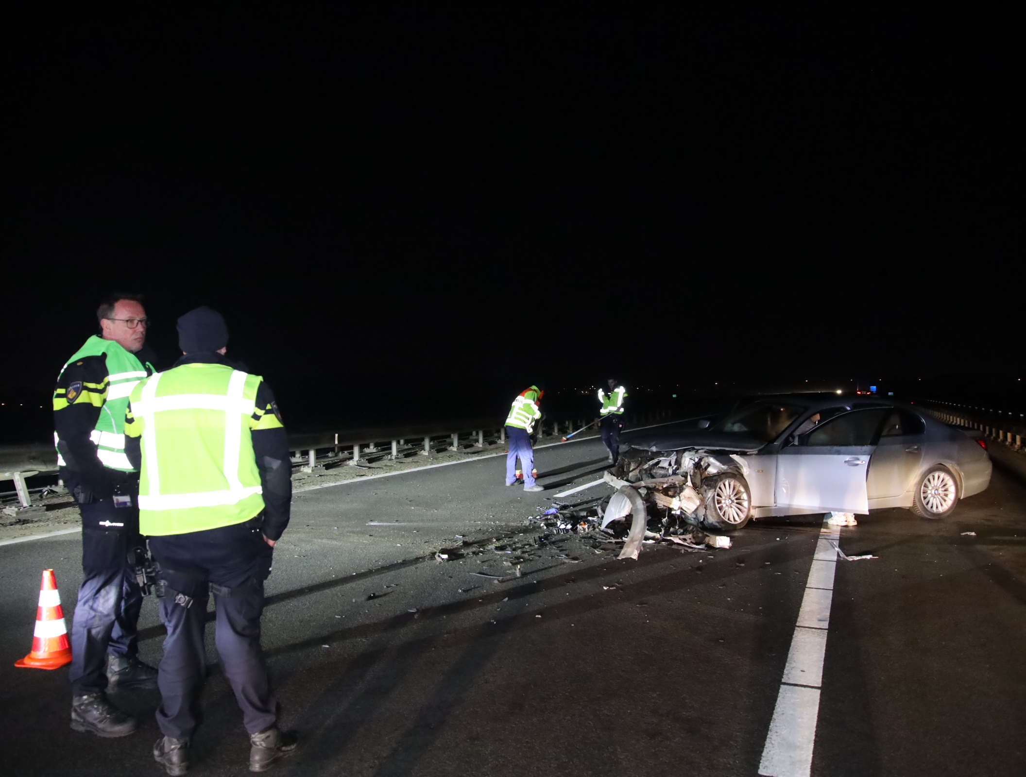 Een bergingsbedrijf heeft het beschadigde voertuig afgevoerd. Het verkeer wordt pas hervat zodra de weg volledig is vrijgegeven en veilig is verklaard.