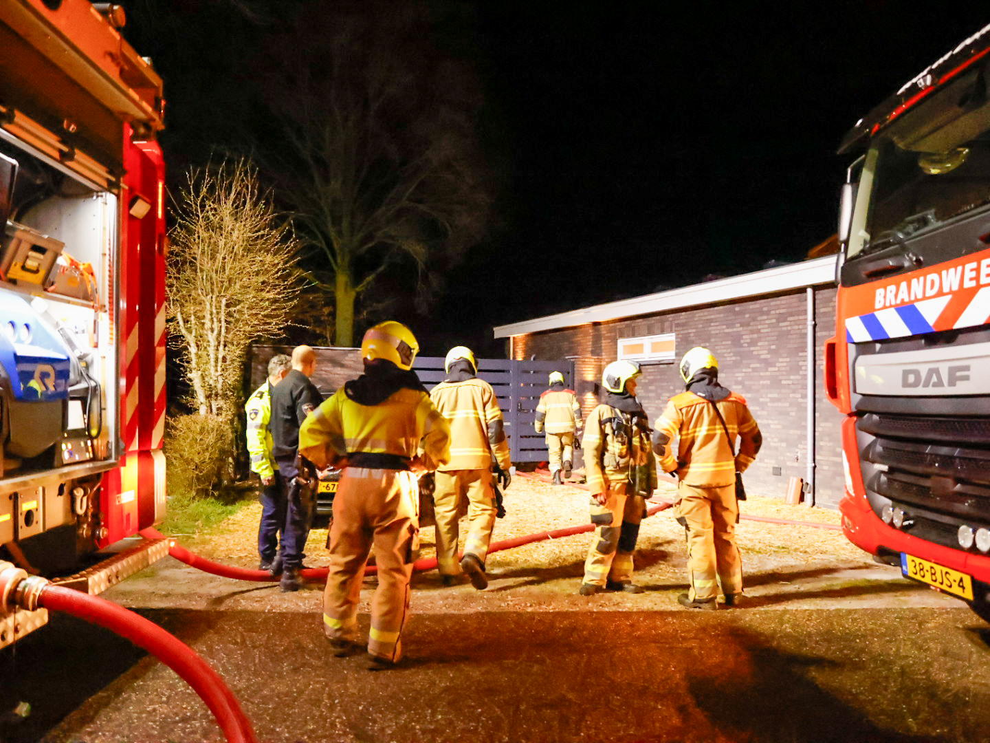 ERP – Vrijdagavond heeft een uitslaande brand gewoed in een schuur aan de Trentweg, achter een woonhuis. De brandweer rukte met meerdere voertuigen uit en had het vuur snel onder controle.