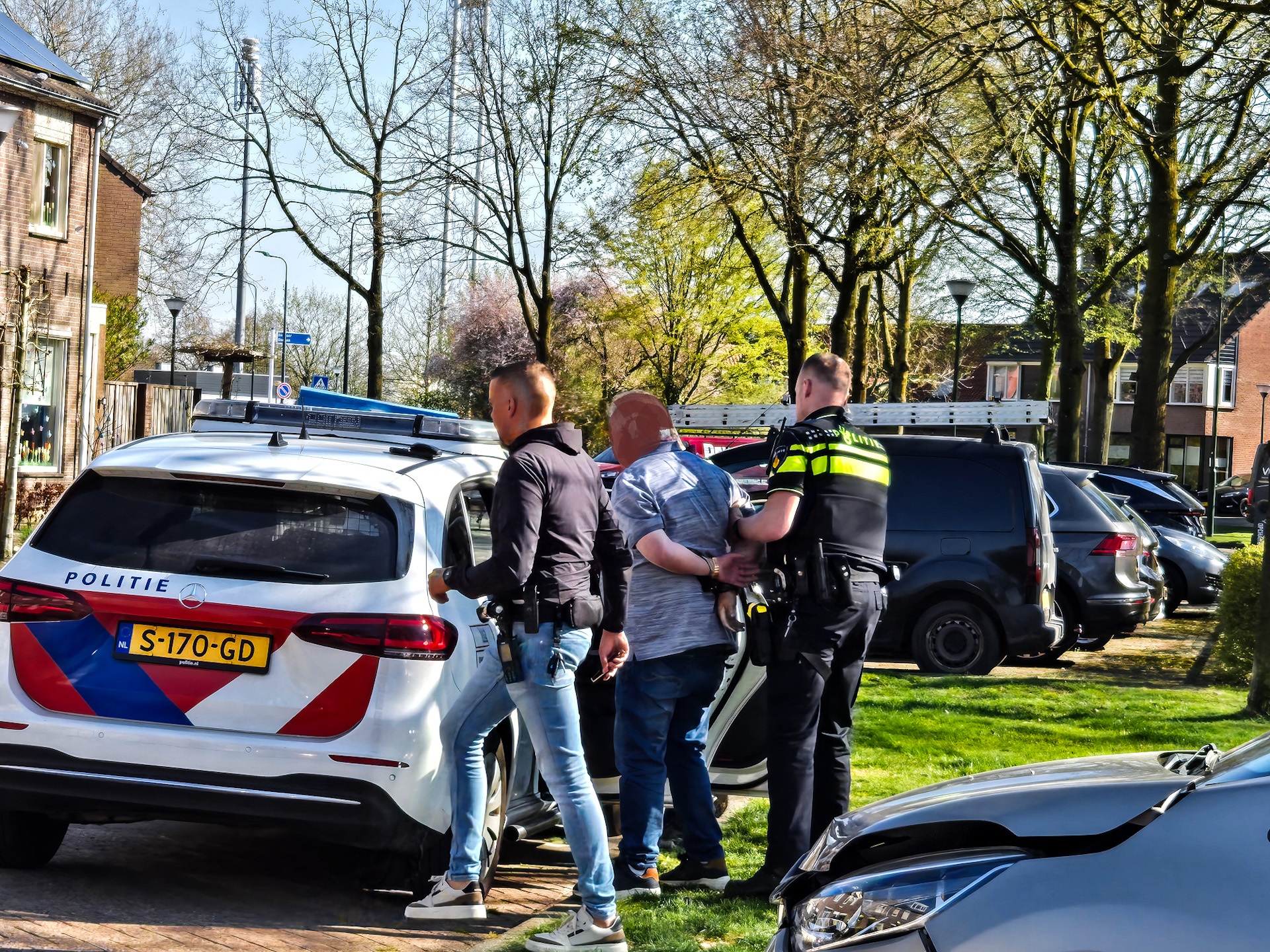 De man bleek onder invloed en gedroeg zich agressief tegenover de politie. Hij is geboeid afgevoerd. Een takelbedrijf heeft de zwaar beschadigde auto weggesleept.