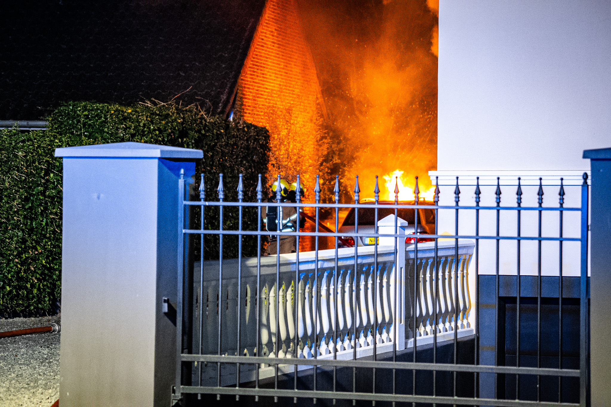 Auto vliegt in brand voor woning, oorzaak nog onbekend