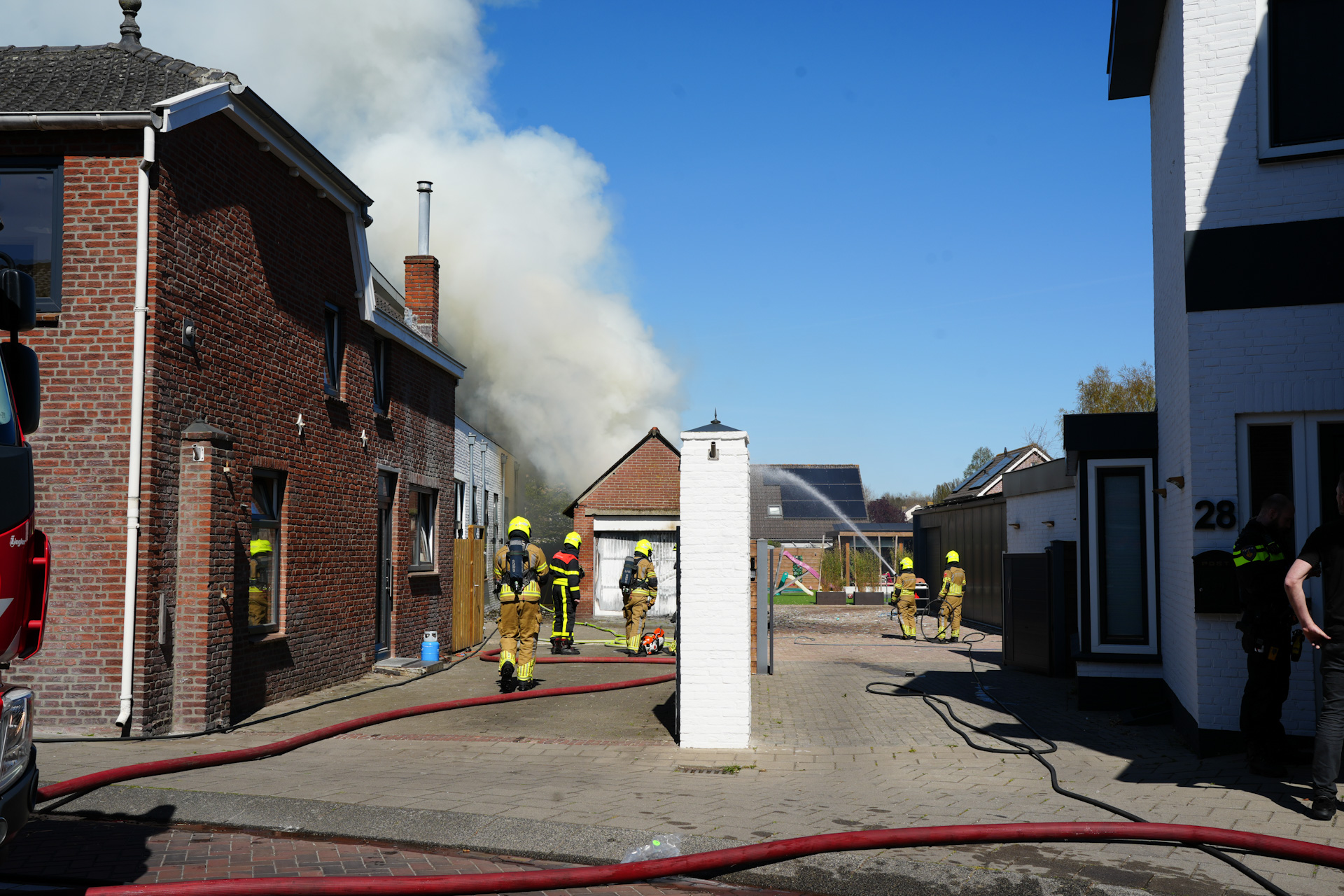 Volgens de politie ontstond de brand door een ongeluk tijdens werkzaamheden. Een bewoner was op het moment van uitbreken aan het werk en is flink geschrokken. Op de oprit is een gasfles aangetroffen. Brandweer uit onder andere Waalwijk werd ingezet voor bijstand. Vanwege het droge weer wordt er sneller opgeschaald. Mensen die hinder ondervinden van de rook wordt geadviseerd om ramen en deuren gesloten te houden.