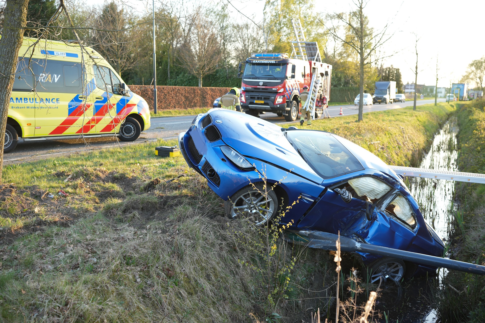 Geplaatst op 9 april 2025, om 20:58 uurSPRANG-CAPELLE – Woensdagavond rond 19.15 uur is een auto op de Bevrijdingsweg van de weg geraakt, waarna het voertuig tegen een lantaarnpaal en een boom botste en achterstevoren in een sloot tot stilstand kwam.
