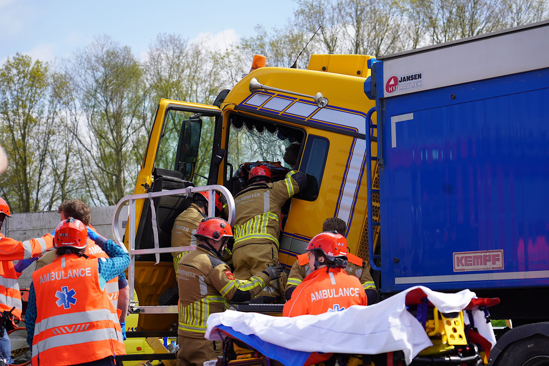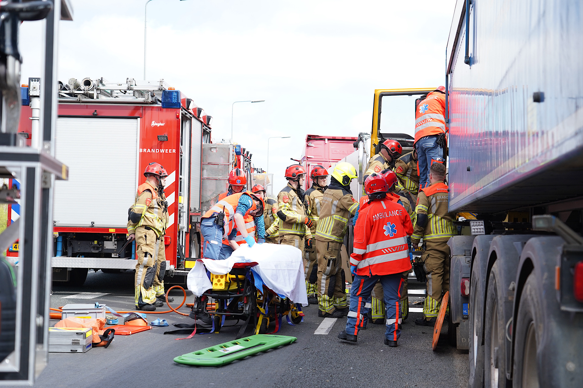 RAAMSDONKVEER – Op de A59 bij Raamsdonkveer heeft zich een ernstig ongeval voorgedaan tussen twee vrachtwagens. Eén van de voertuigen is achterop de ander gebotst, waardoor de chauffeur van de achterste vrachtwagen bekneld raakte.