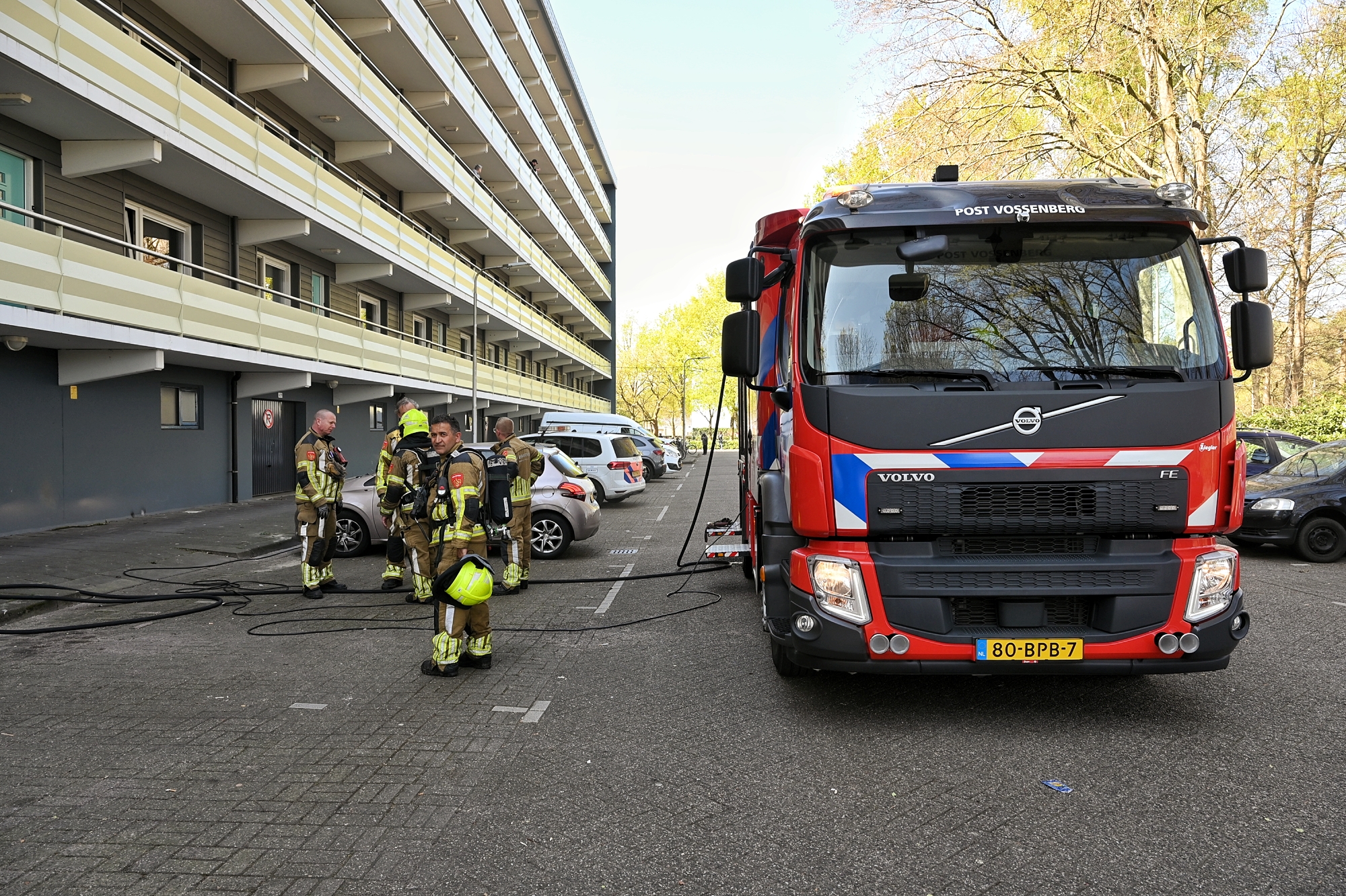 Een buurtbewoner merkte de brand op en hielp de twee om te ontsnappen. Kort daarna sloegen ze op de vlucht. De brand veroorzaakte aanzienlijke schade aan de berging. Uit voorzorg is het omliggende gebied afgezet en mogen flatbewoners niet in de buurt komen.