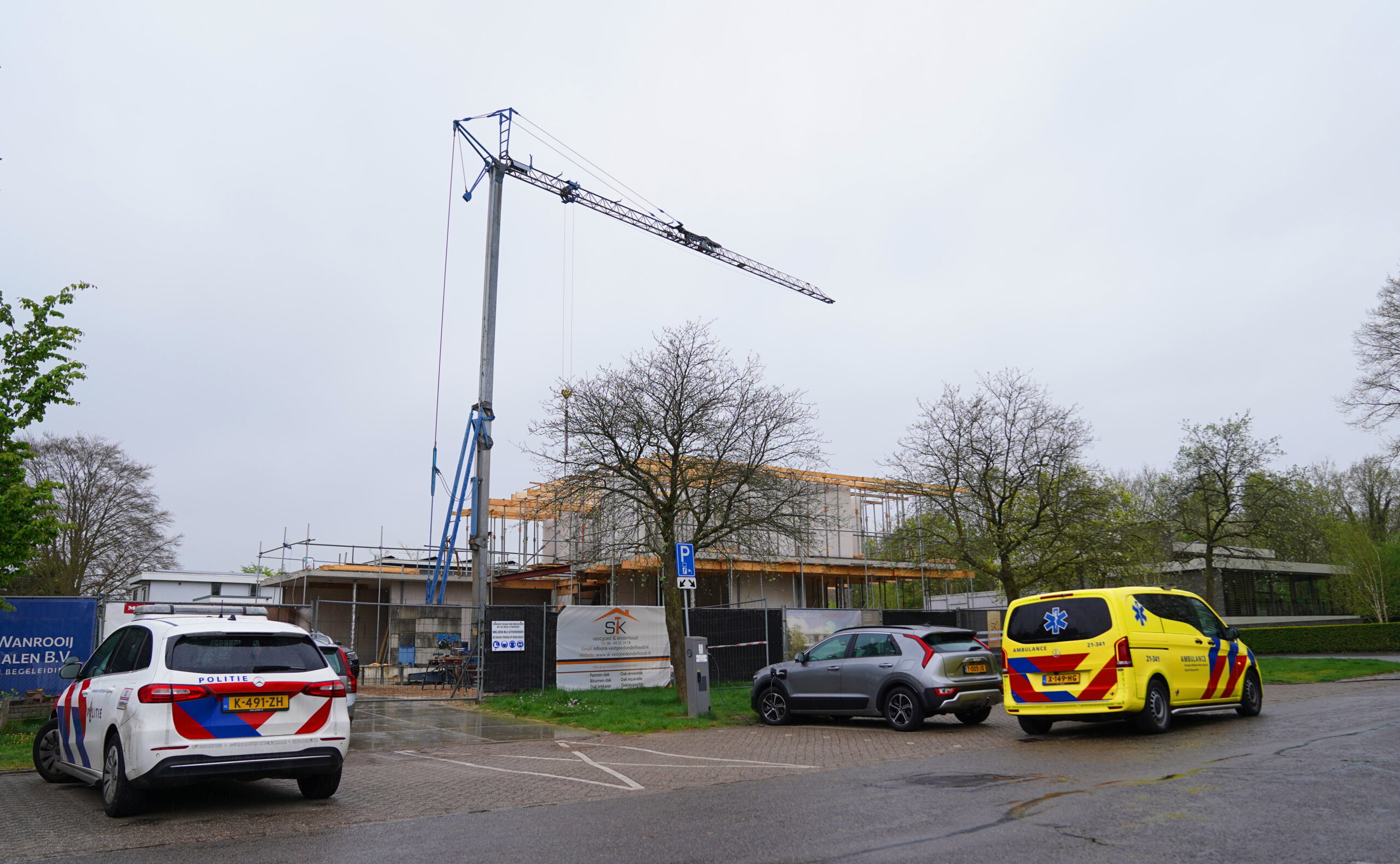 Op de bouwplaats wordt een woning in eigen beheer gebouwd. Omdat het geen bedrijfsmatige bouw betreft, komt de arbeidsinspectie niet in actie. De politie onderzoekt de toedracht van het incident.