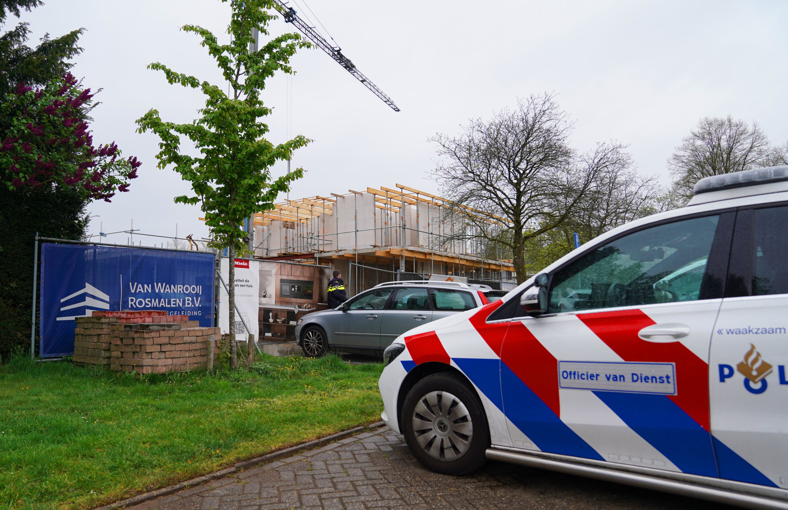 Op de bouwplaats wordt een woning in eigen beheer gebouwd. Omdat het geen bedrijfsmatige bouw betreft, komt de arbeidsinspectie niet in actie. De politie onderzoekt de toedracht van het incident.