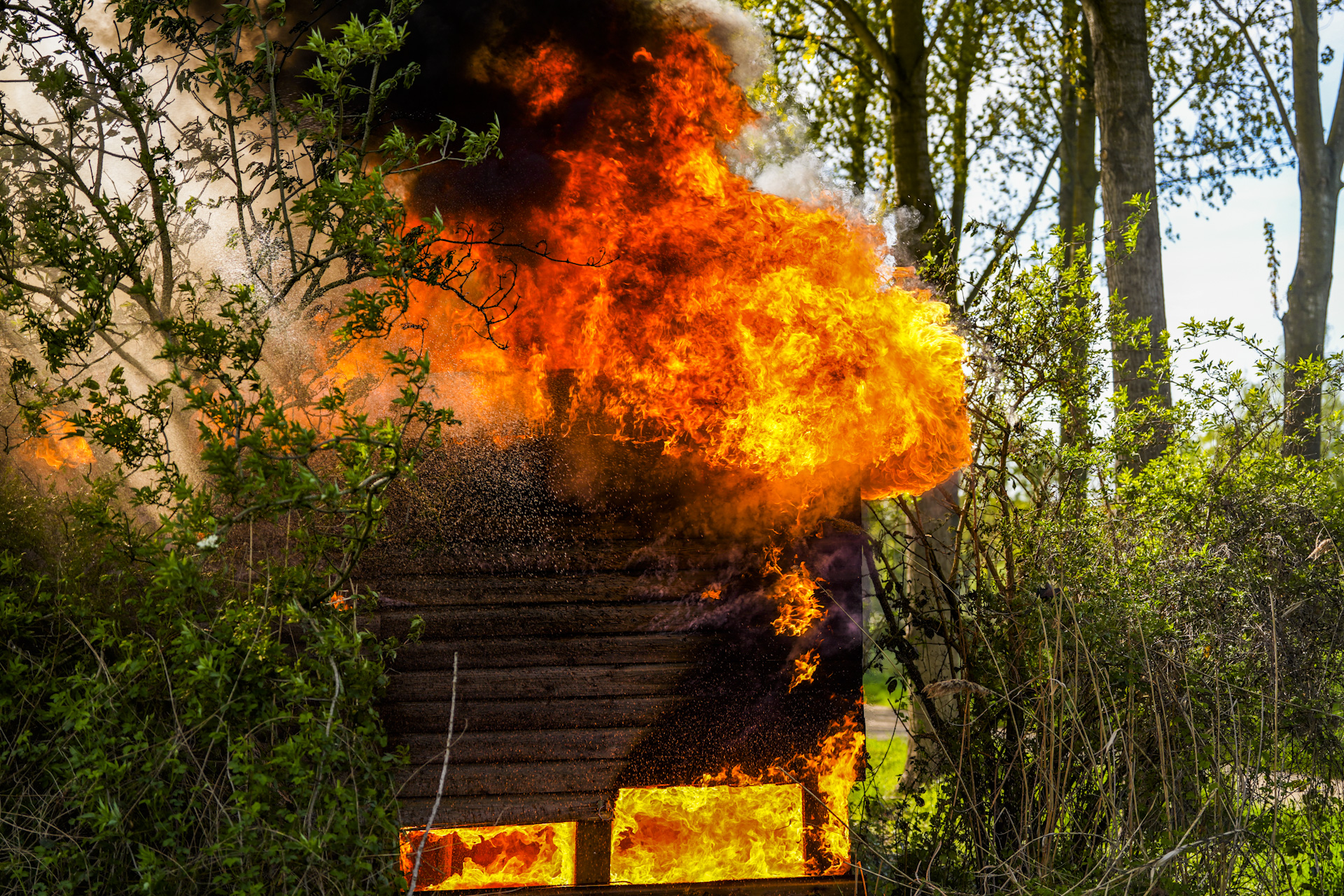 Binnen korte tijd sloegen metershoge vlammen uit het gebouw en trokken dikke zwarte rookwolken over de omgeving. De brandweer besloot de schuur gecontroleerd te laten uitbranden en richtte zich op het beschermen van de omliggende panden tegen overslag.