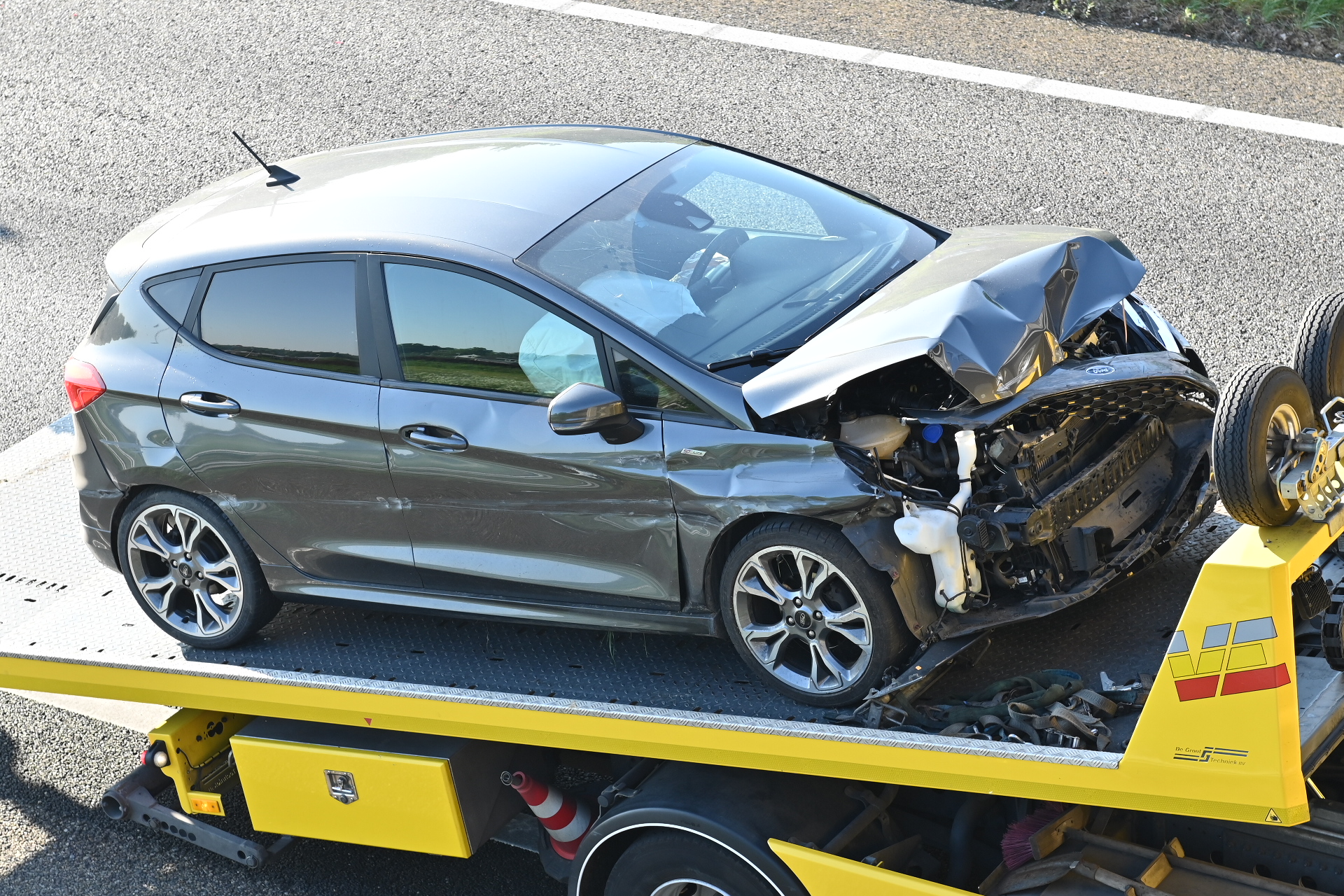 Bij het eenzijdige ongeval raakte niemand gewond. De auto is door een berger van de weg gehaald. De geleiderail raakte beschadigd en moet worden hersteld.