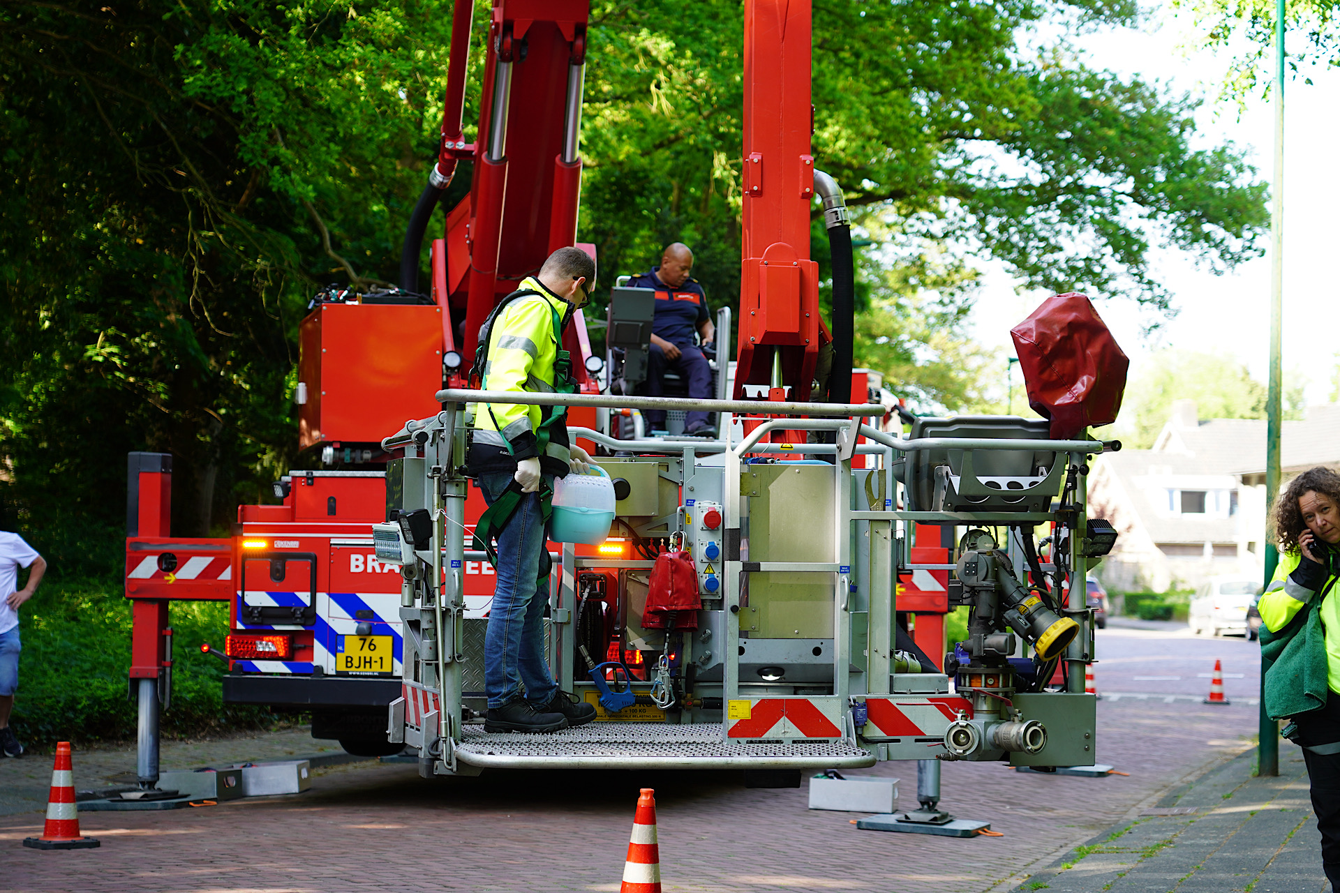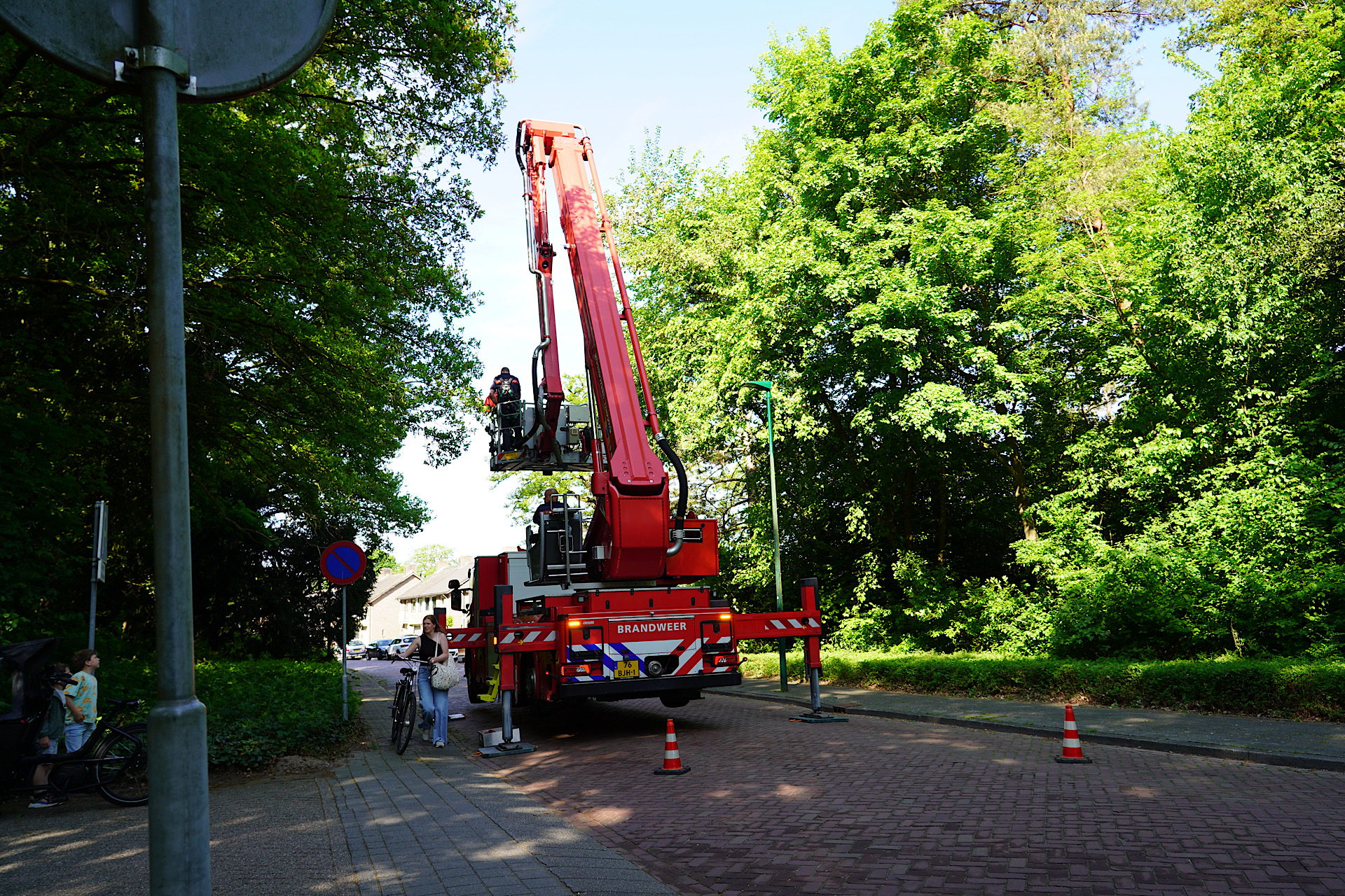 Omstanders dachten dat de gans vastzat in een boom, maar bij aankomst bleek dat niet het geval. De gans was bezig met haar jongen, waarvan er één net op dat moment uit de bosjes kwam toen de hulpdiensten arriveerden.