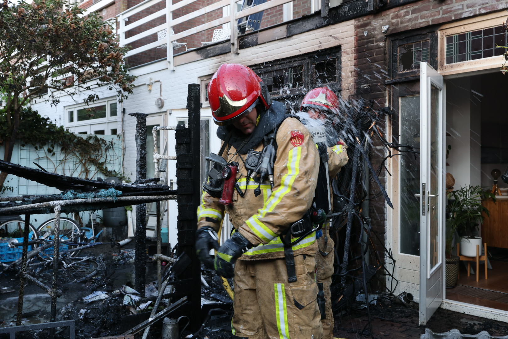De brandweer kwam met twee tankautospuiten en een hoogwerker ter plaatse en bluste het vuur van beide kanten van het huis. De brand was snel onder controle.