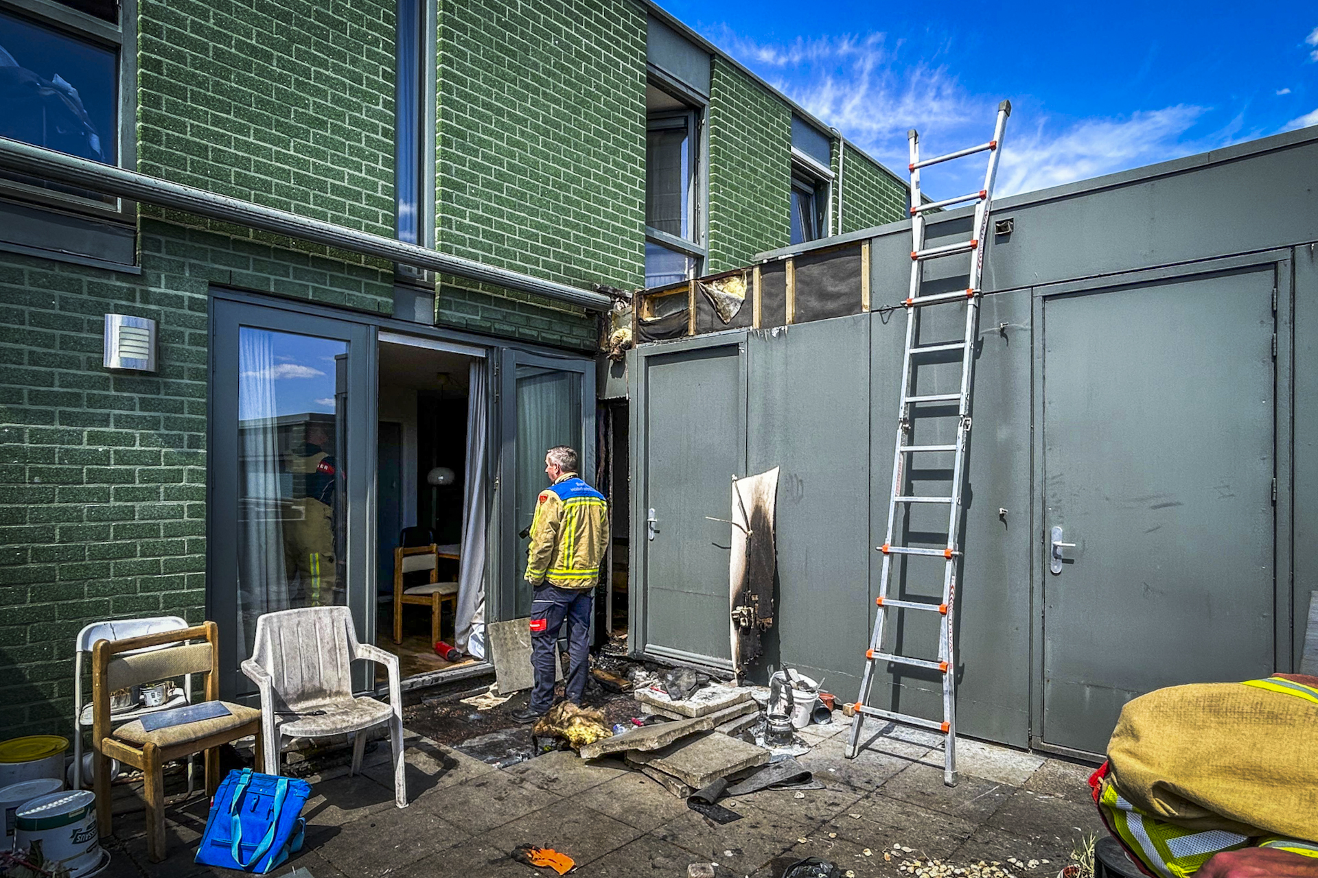 Brand op balkon slaat over naar berging door werkzaamheden met een brander