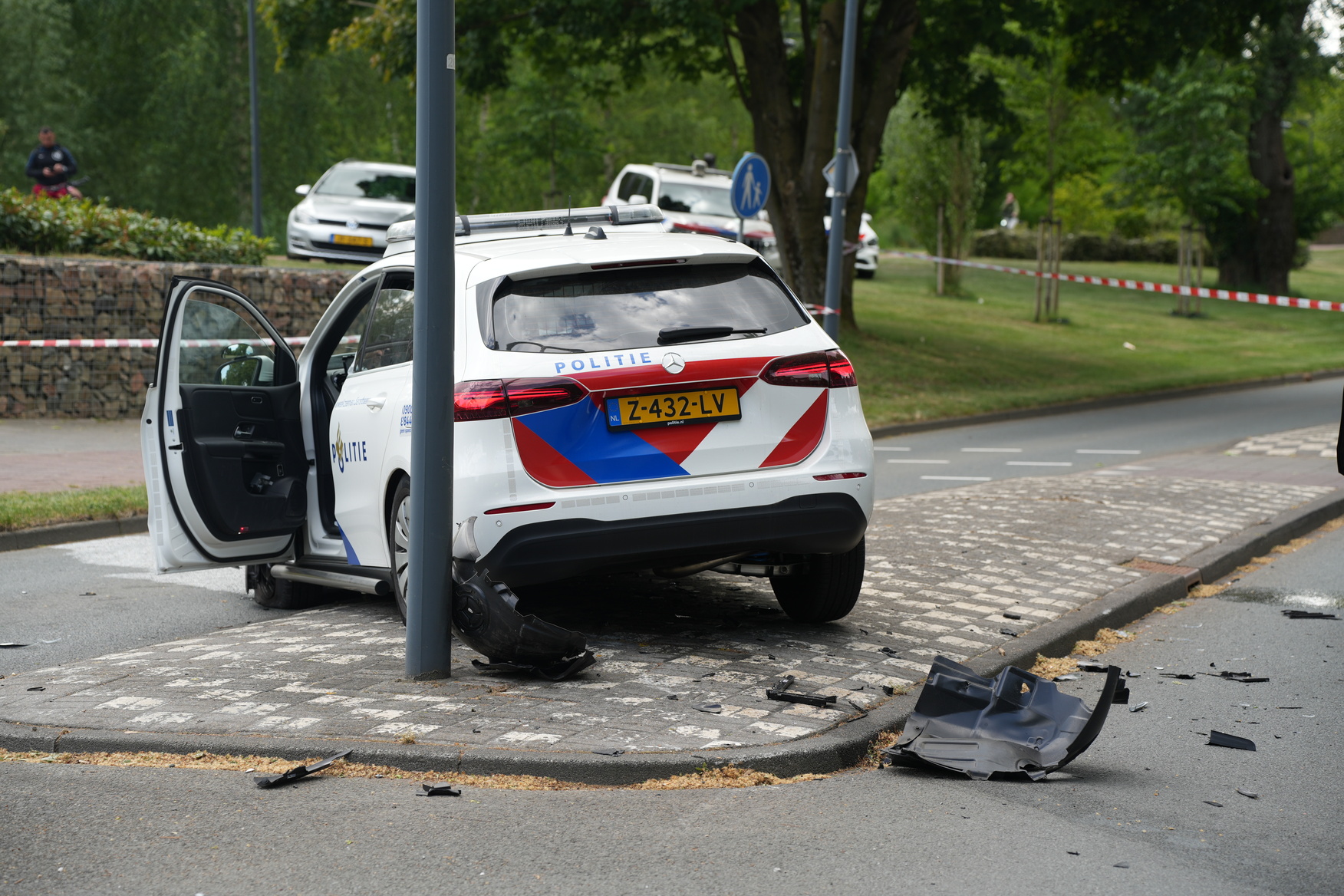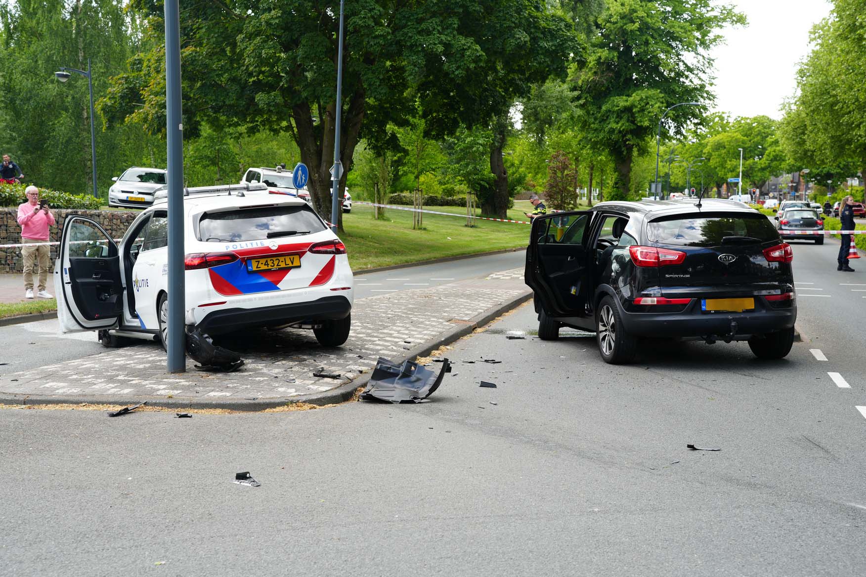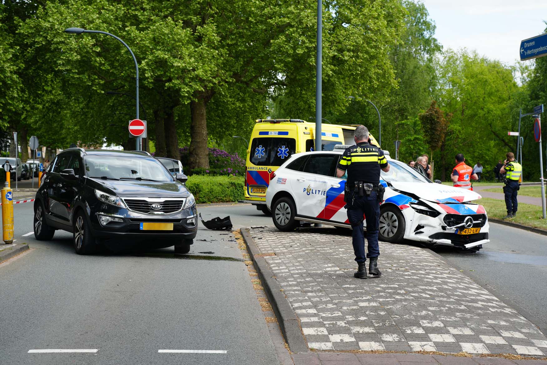 Bij het ongeval raakte een vrouwelijke agent lichtgewond. Zij is door ambulancepersoneel nagekeken, maar hoefde niet naar het ziekenhuis. Haar mannelijke collega, die ook in het dienstvoertuig zat, bleef ongedeerd. Beide politiemensen zijn na het incident door collega’s naar het bureau gebracht.