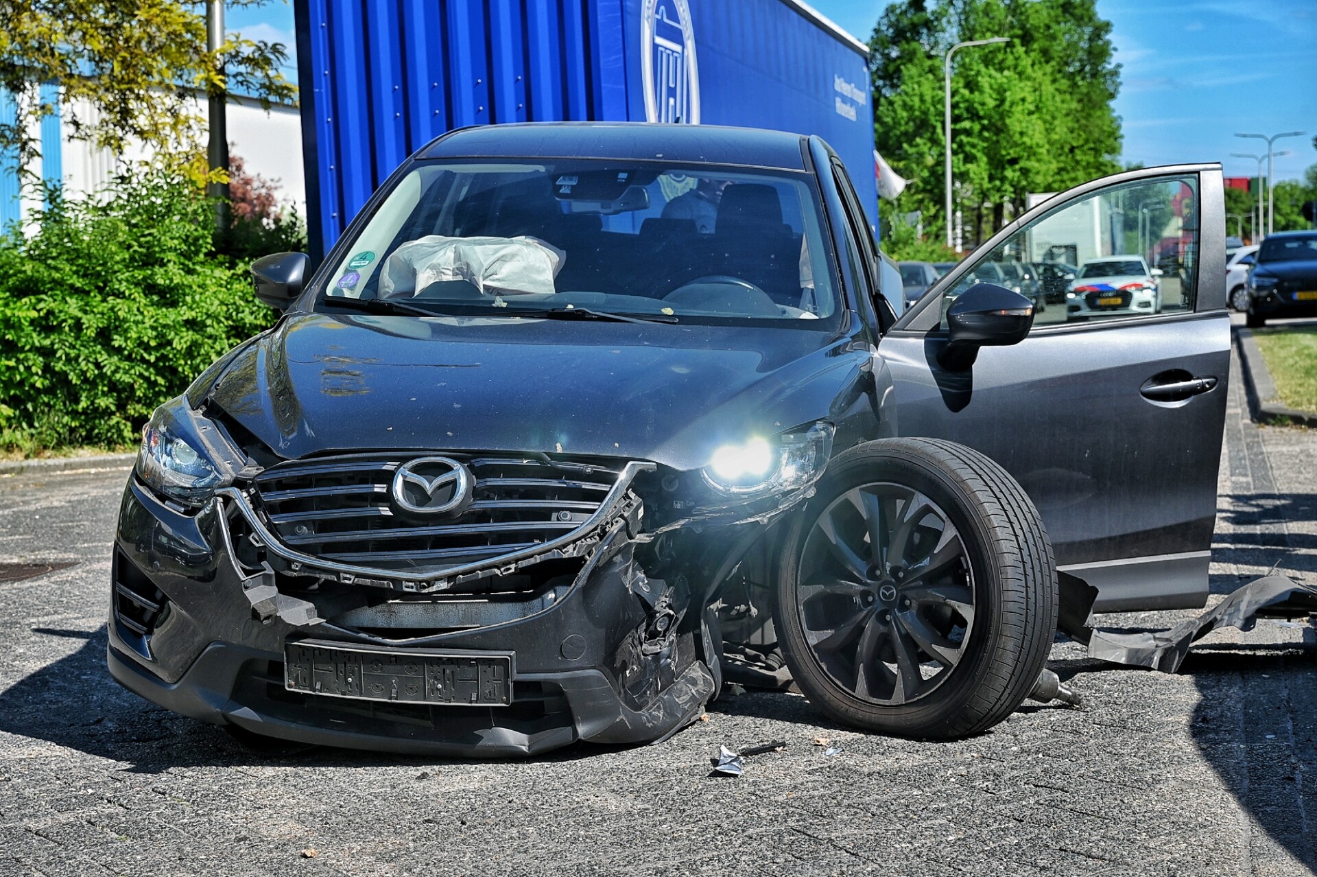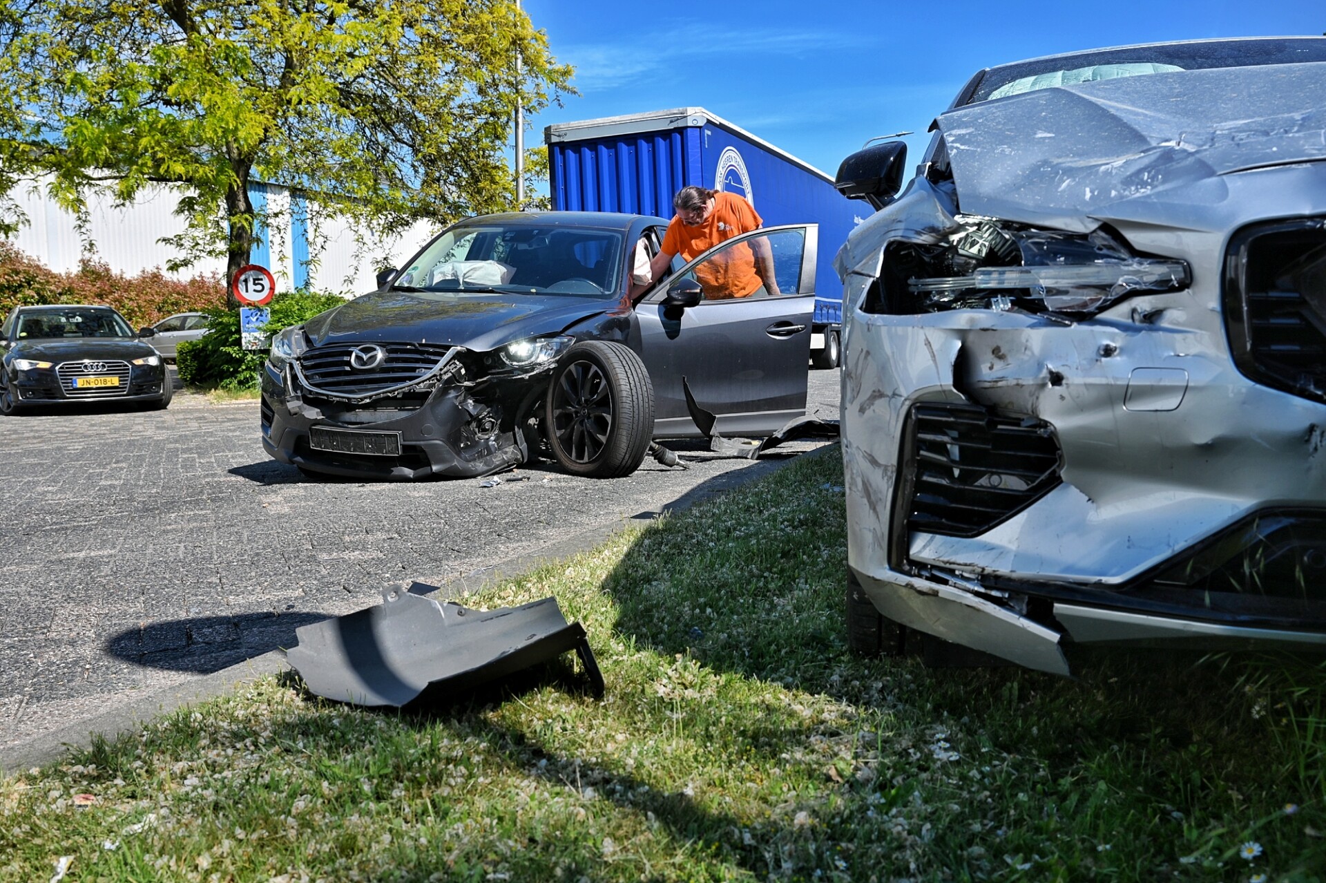Geplaatst op 9 mei 2025, om 20:35 uurTILBURG – Een proefrit met een Volvo is vrijdagmiddag geëindigd in een aanrijding en ravage aan de Wegastraat op het industrieterrein in Tilburg. De bestuurder zag bij het wegrijden een auto uit een uitrit over het hoofd, waarna een flinke botsing volgde.