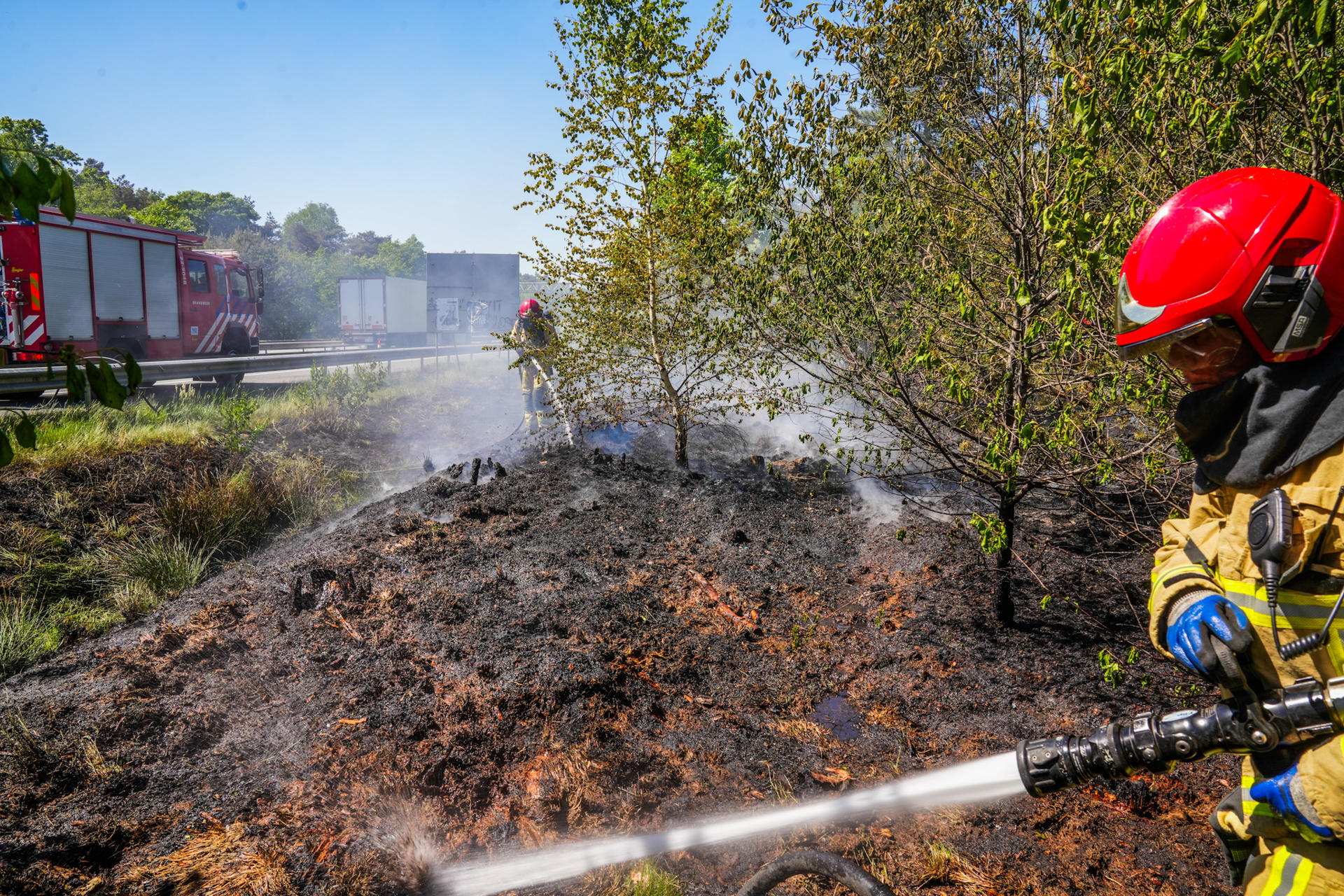 Bosbrand langs snelweg onder controle, rijstrook tijdelijk dicht