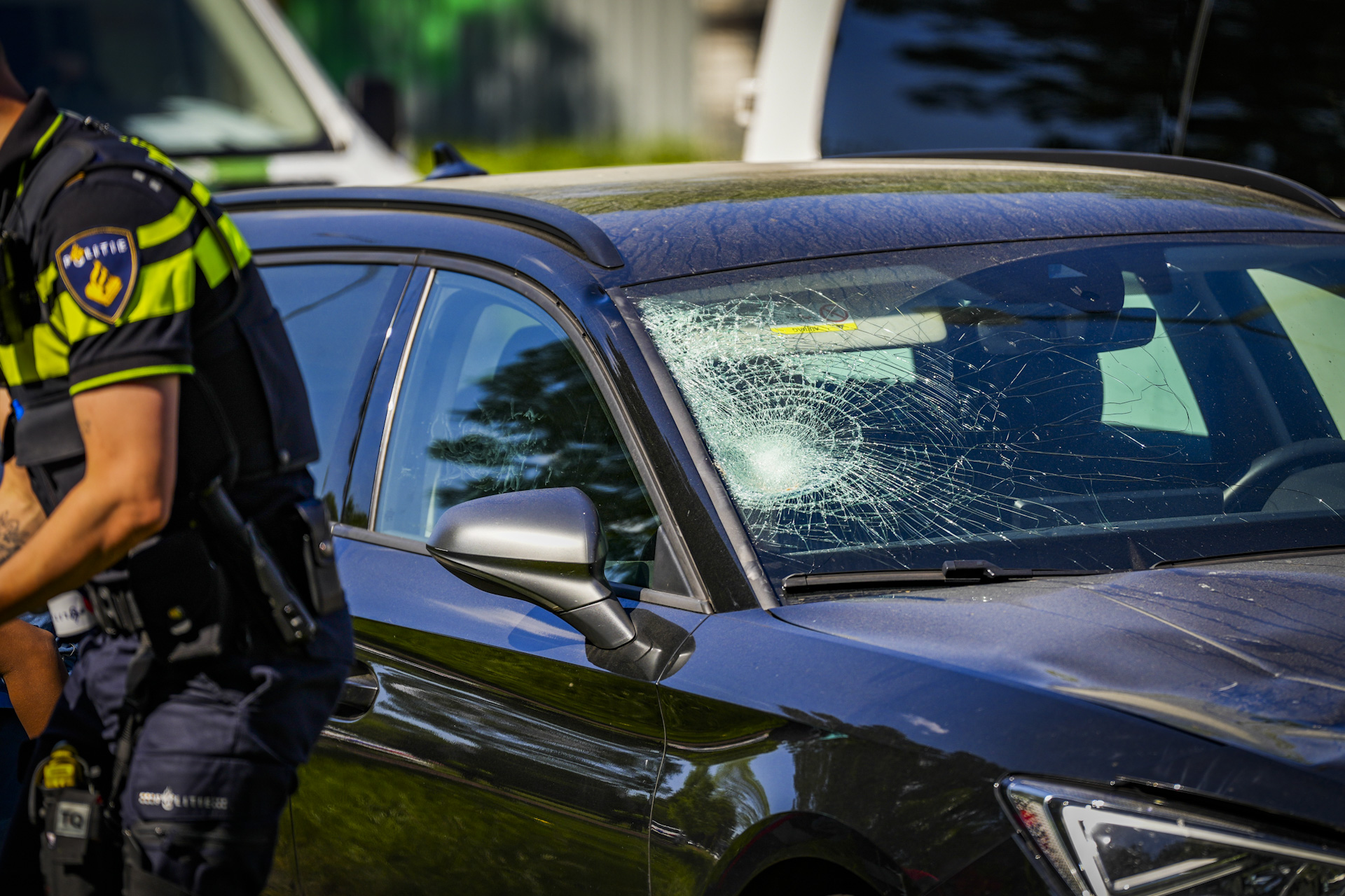 De oorzaak van de aanrijding is nog niet bekend. De betrokken auto heeft forse schade aan de voorruit, wat wijst op de impact van de botsing.