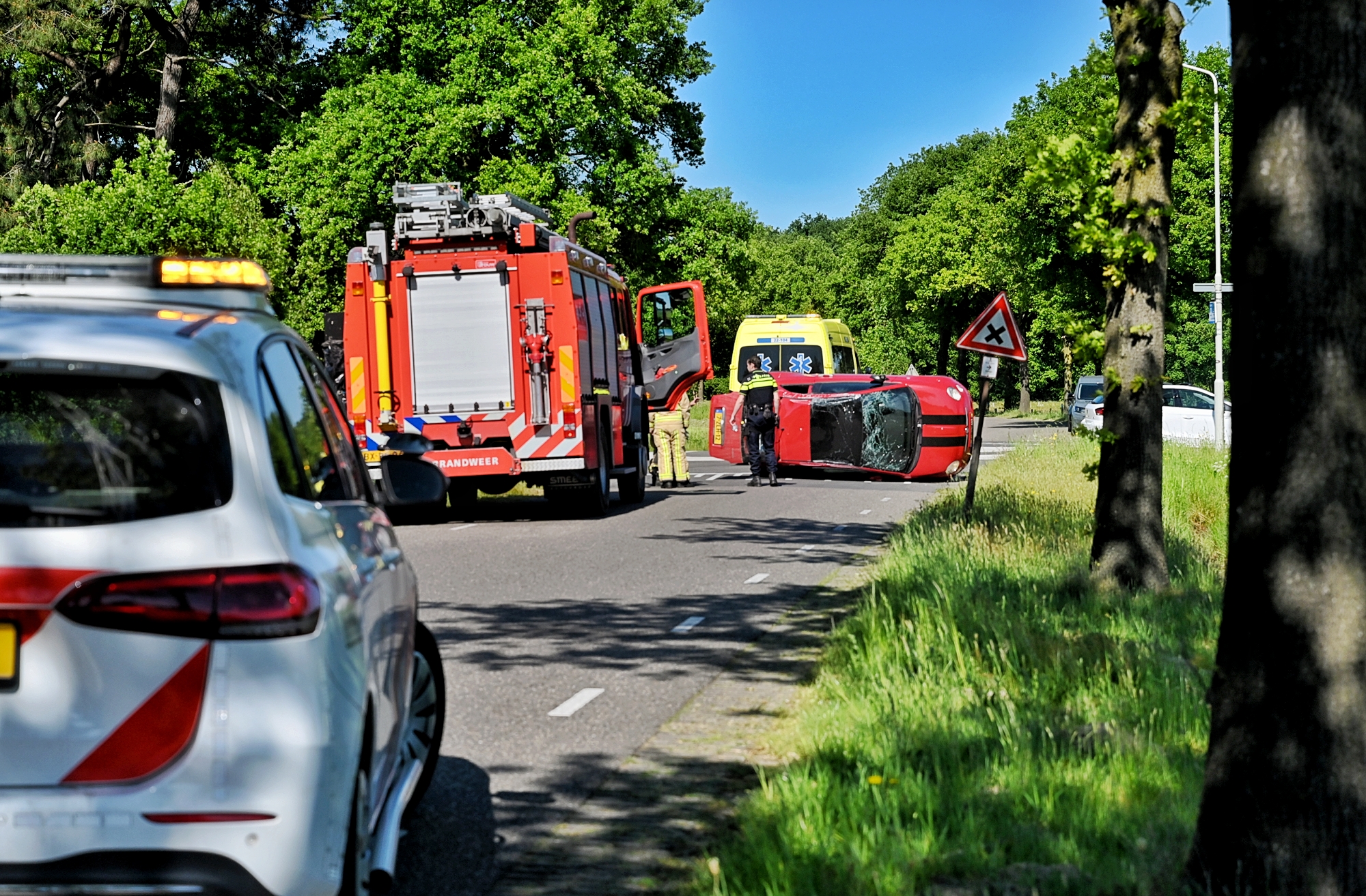 Vrouw gewond na botsing op kruising, auto belandt op zijkant