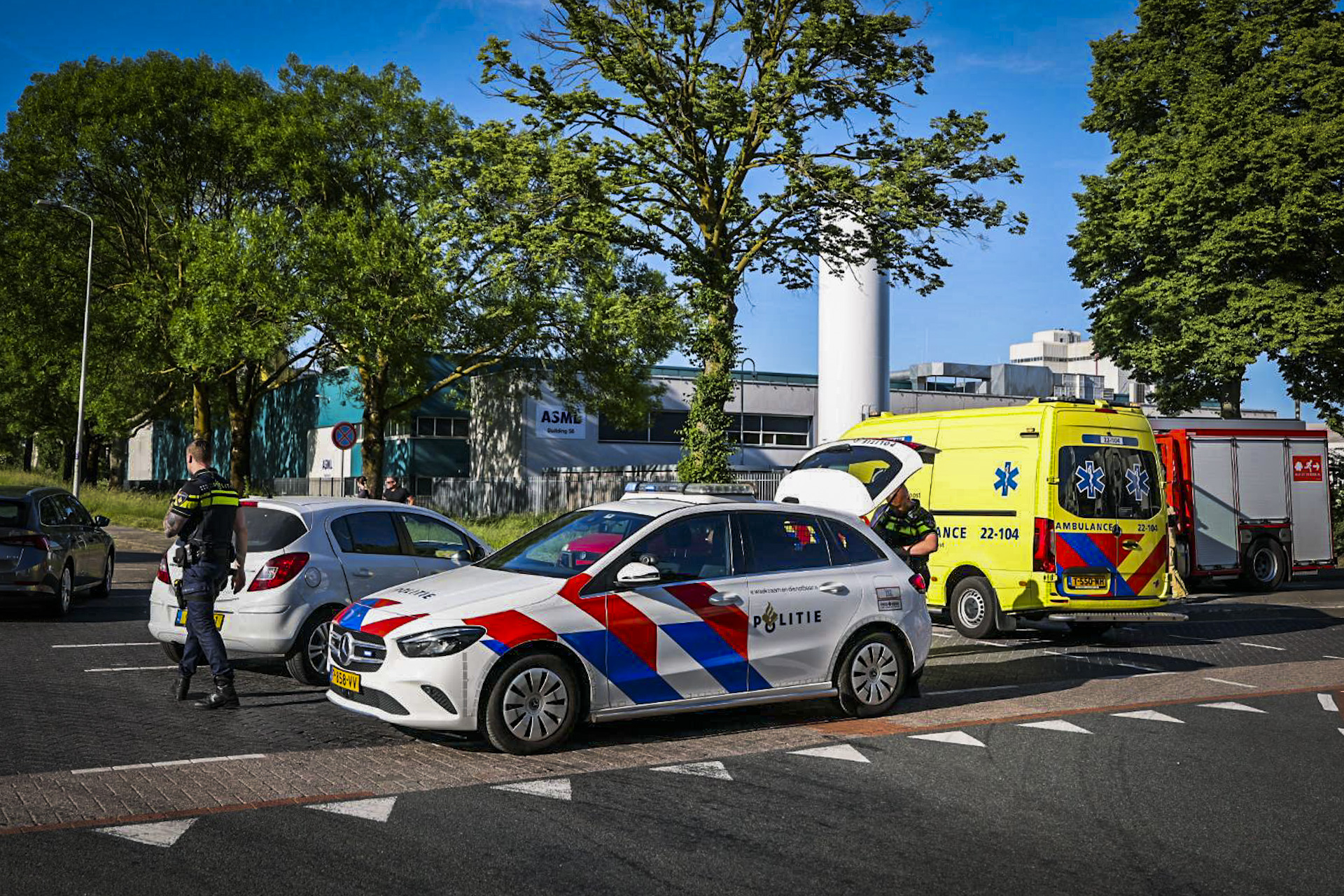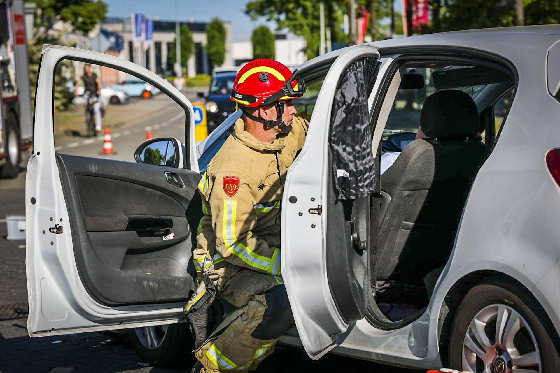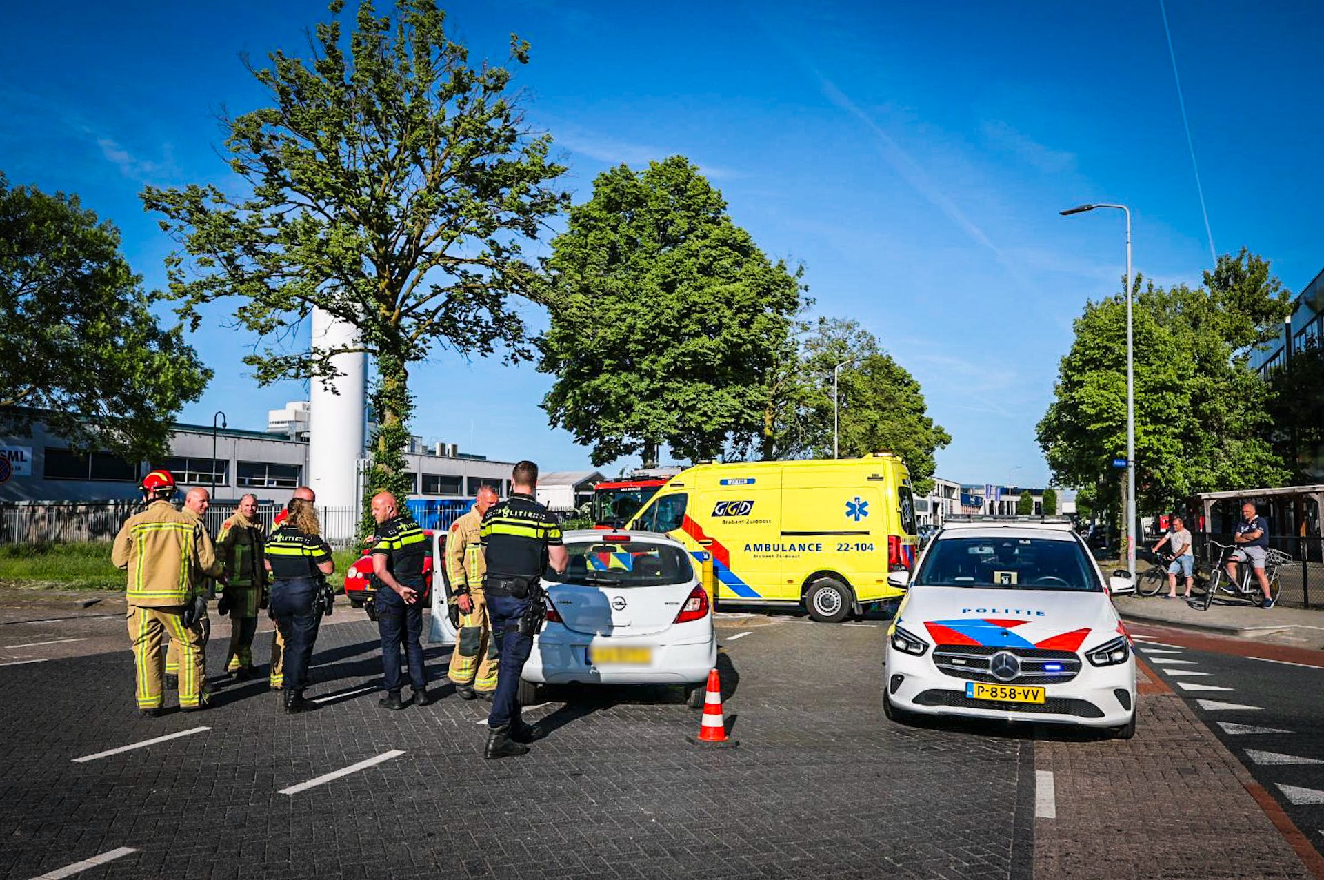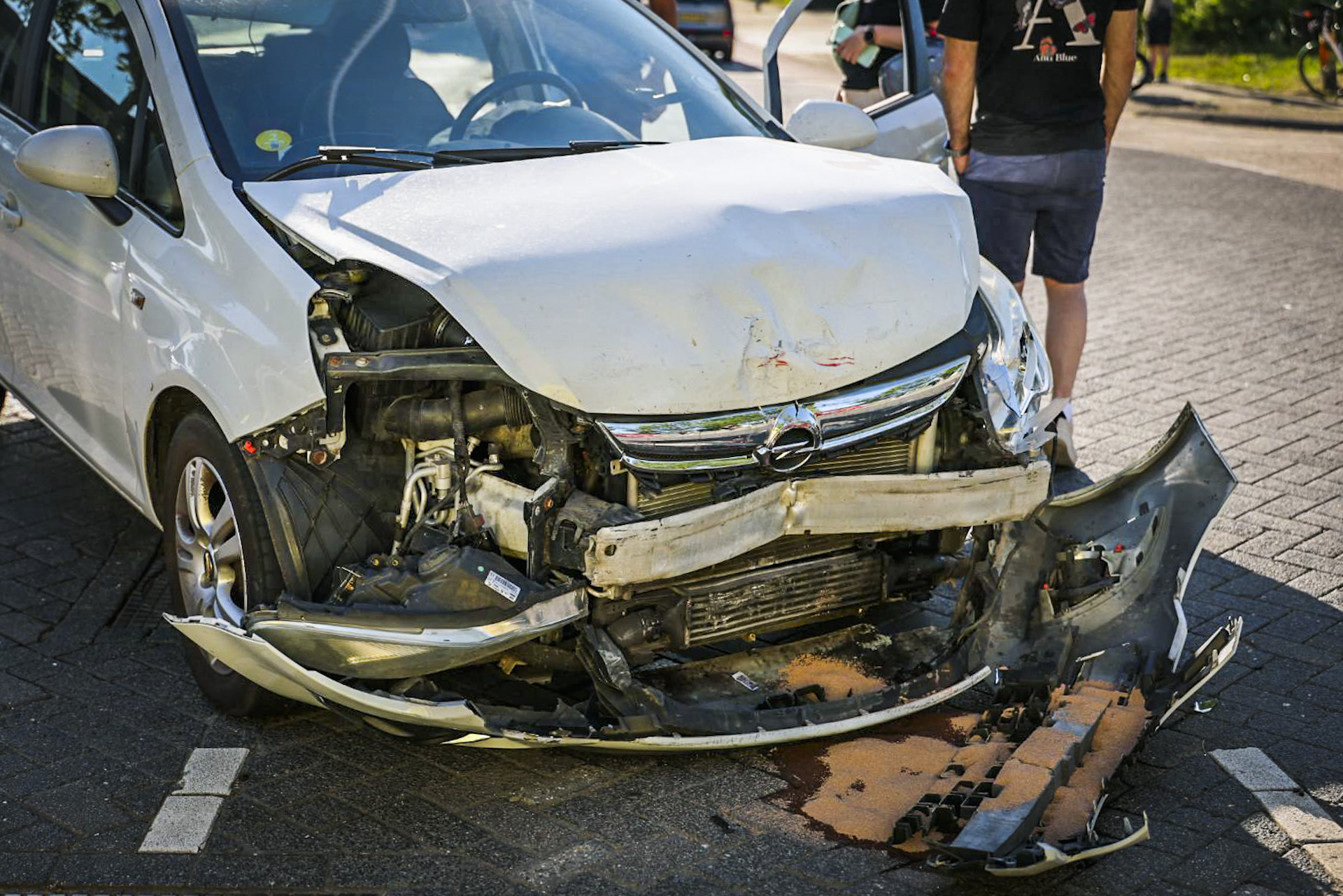 De witte auto botste met de voorzijde tegen de zijkant van de rode auto. In het witte voertuig zat een vrouw, die na hulp van de brandweer zelfstandig uit haar auto kon komen.