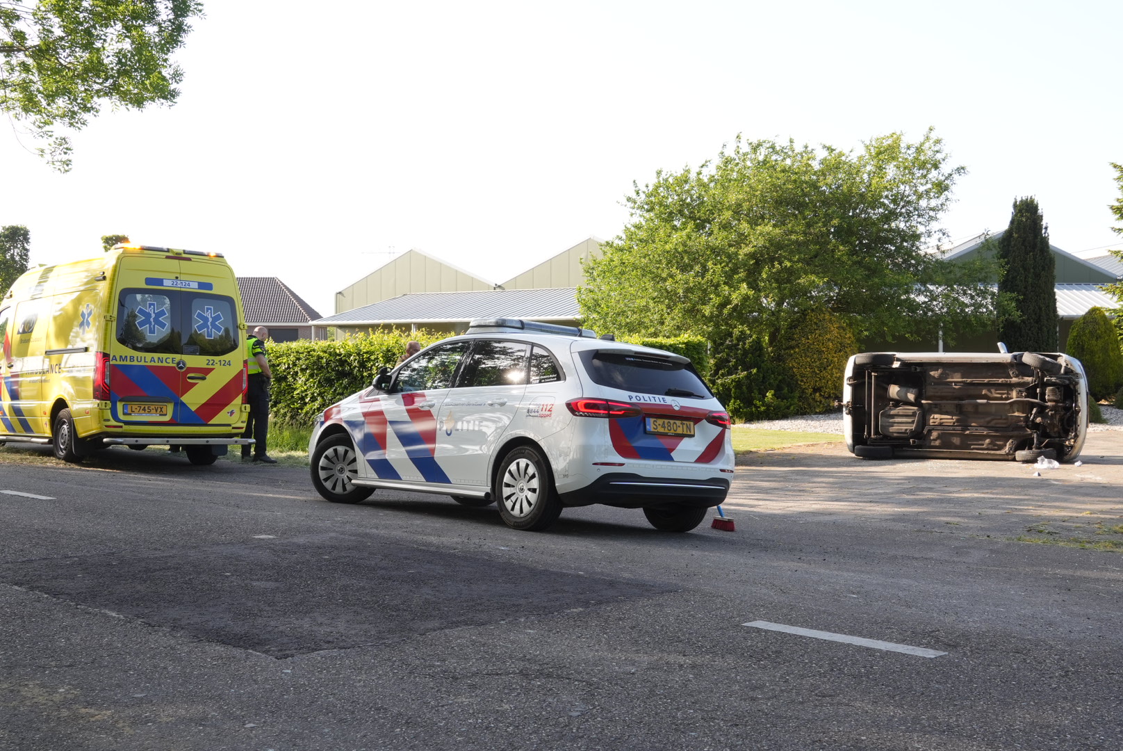 Auto belandt op zijkant na ongeval bij flauwe bocht