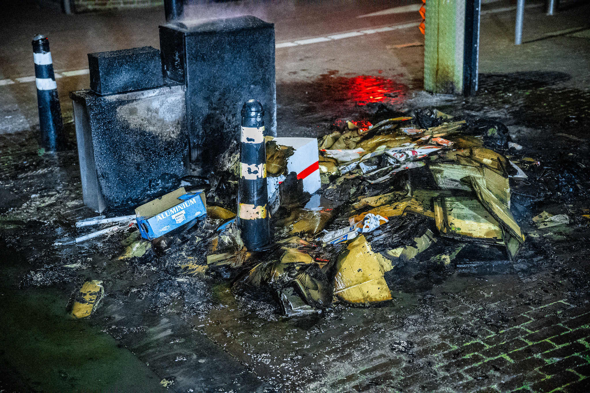 Een stapel oud papier was in brand gestoken langs het voetpad. De brandweer had het vuur snel onder controle en wist schade aan omliggende winkels te voorkomen.