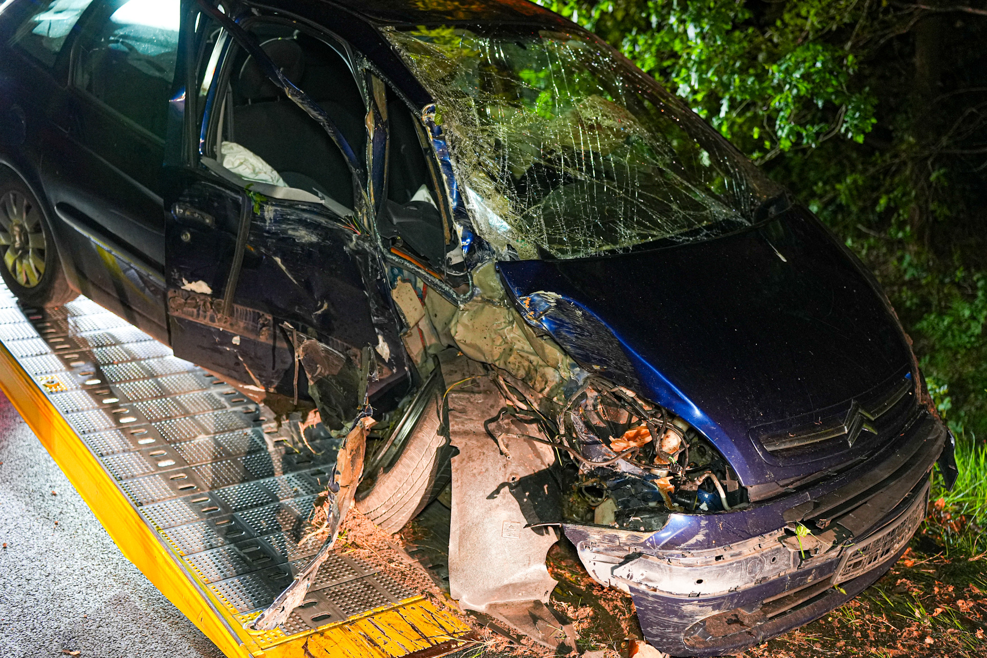 De bestuurder, die aangaf net uit Polen te komen en bijna thuis te zijn, wist zelf uit het zwaar beschadigde voertuig te komen. Voorbijgangers boden eerste hulp totdat ambulancepersoneel arriveerde en de man naar het ziekenhuis bracht.
