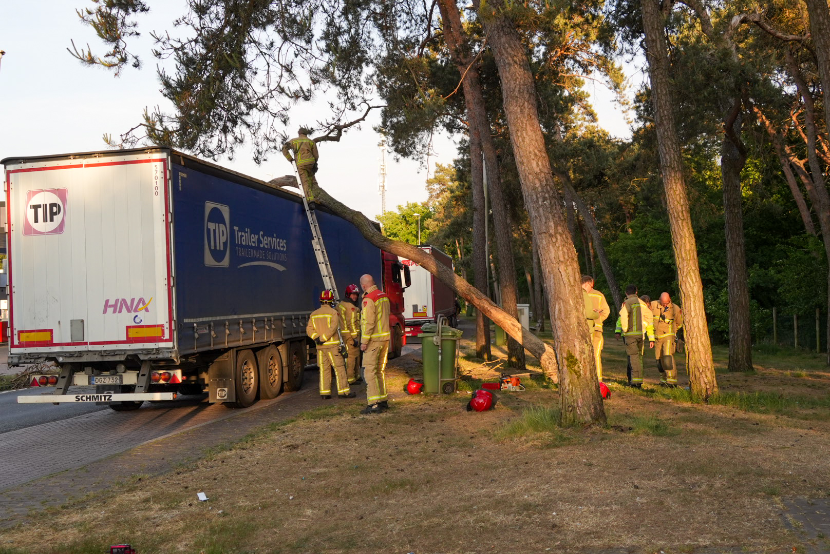 ASTEN – Op een parkeerplaats langs de A67 bij Asten is woensdag een boom afgebroken en bovenop een vrachtwagen terechtgekomen. De brandweer is ter plaatse om de boom veilig te verwijderen.