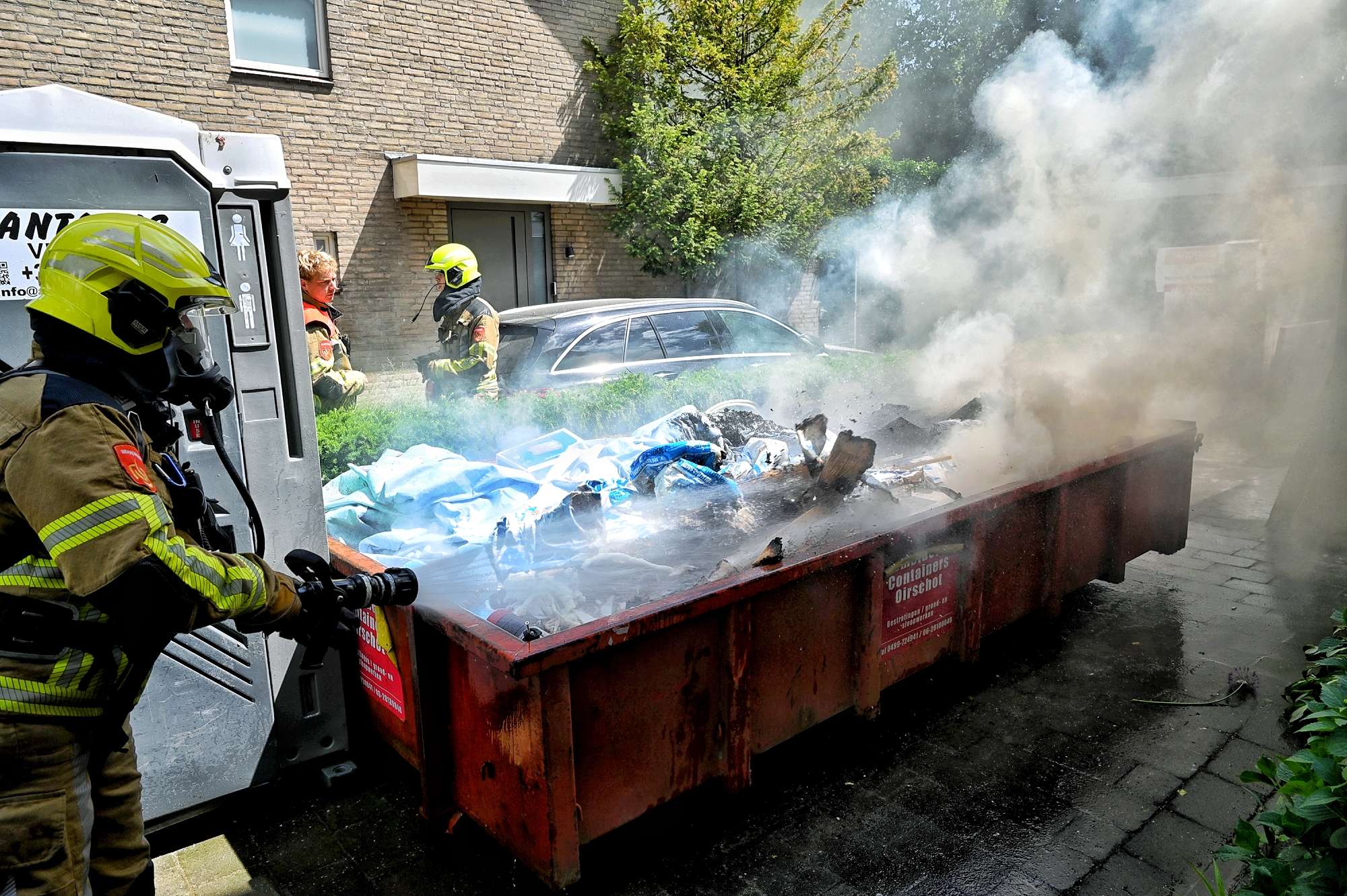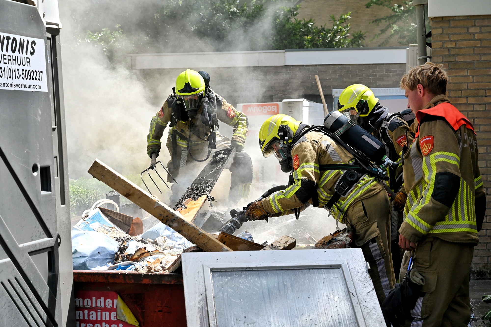 Bij aankomst bleken twee bouwvakkers al begonnen te zijn met blussen met tuinslangen. De brandweer nam het over, doofde het vuur volledig en haalde de inhoud van de container uit elkaar om na te blussen.