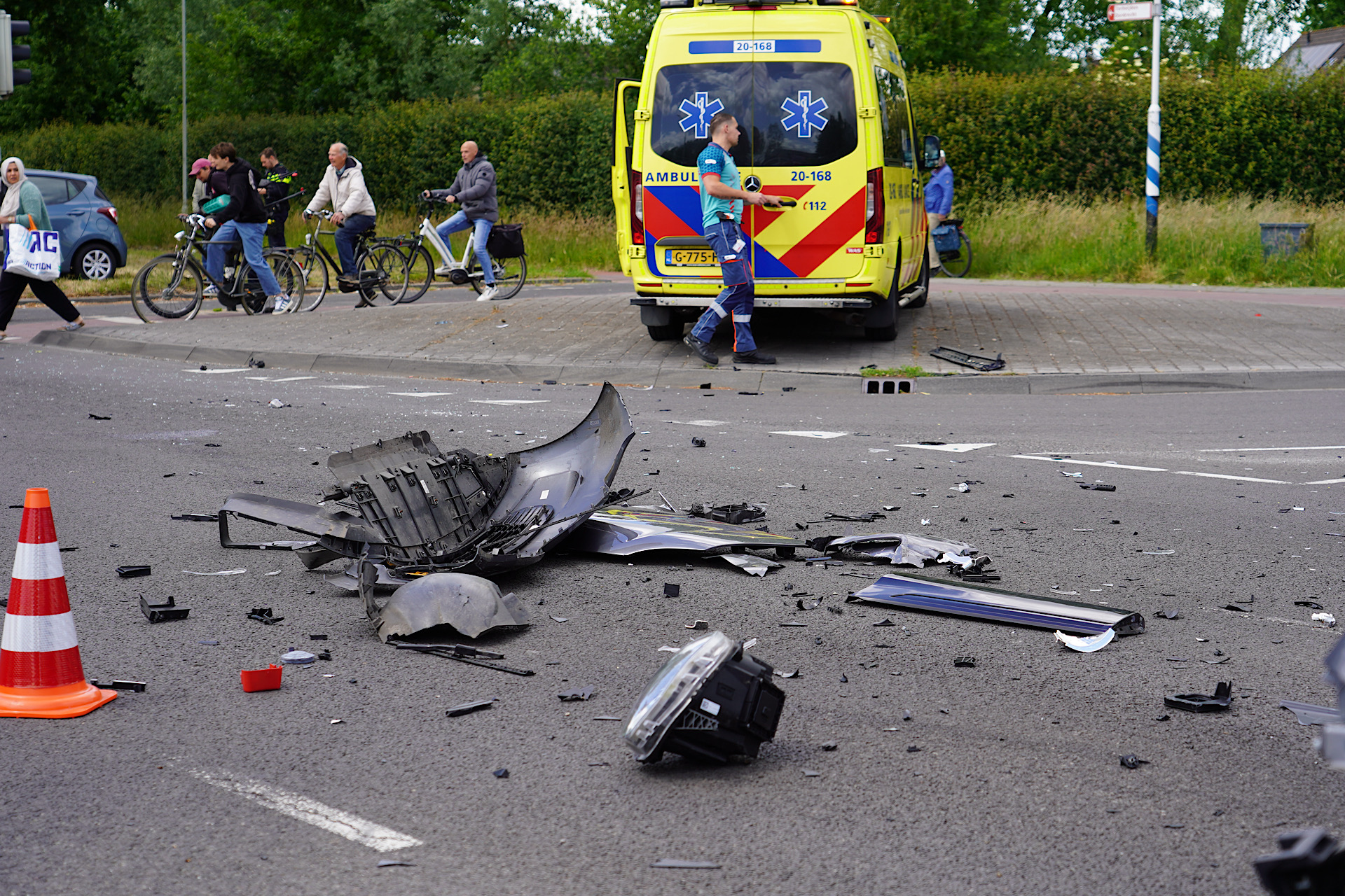 Een bergingsbedrijf is ter plaatse gekomen om de voertuigen af te voeren. De politie doet onderzoek naar de toedracht van het ongeval.