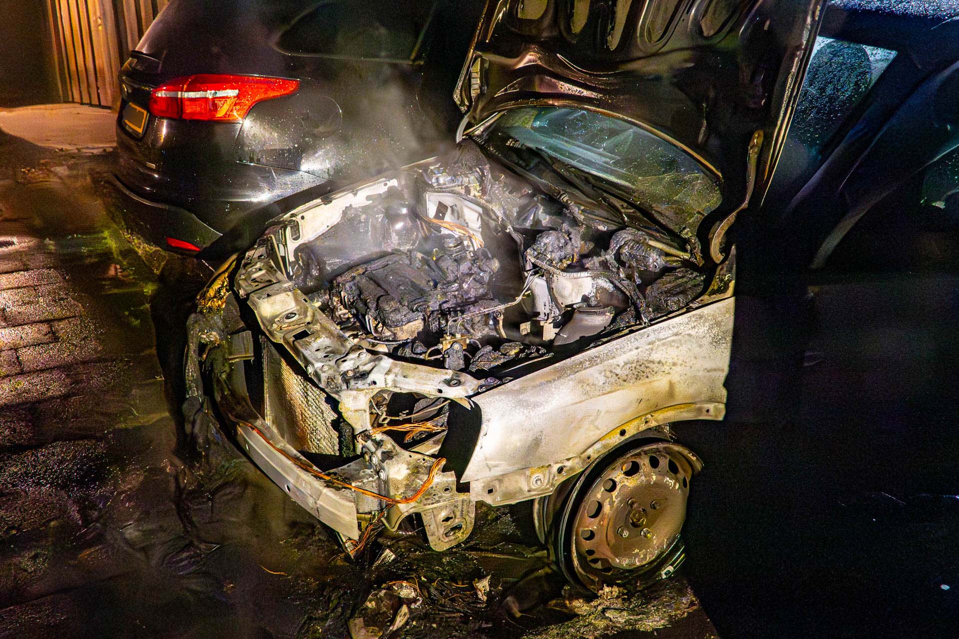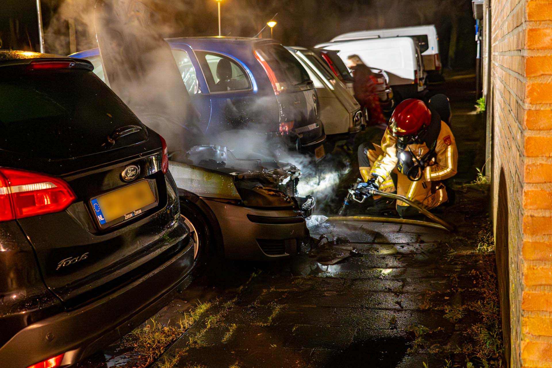 De auto, die geparkeerd stond op een parkeerplaats achter de woningen, is door het vuur verwoest. Een tweede auto die ernaast stond, liep eveneens schade op. De brand werd opgemerkt door een buurtbewoner, die direct alarm sloeg via 112.
