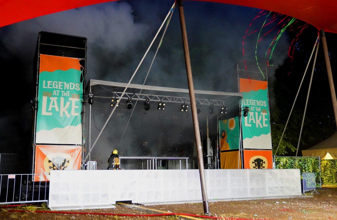 Het podium, uitgerust met licht- en geluidsinstallaties, ging volledig in vlammen op. De schade is aanzienlijk. De brandweer was snel ter plaatse, maar kon niet voorkomen dat het hele bouwwerk werd verwoest.