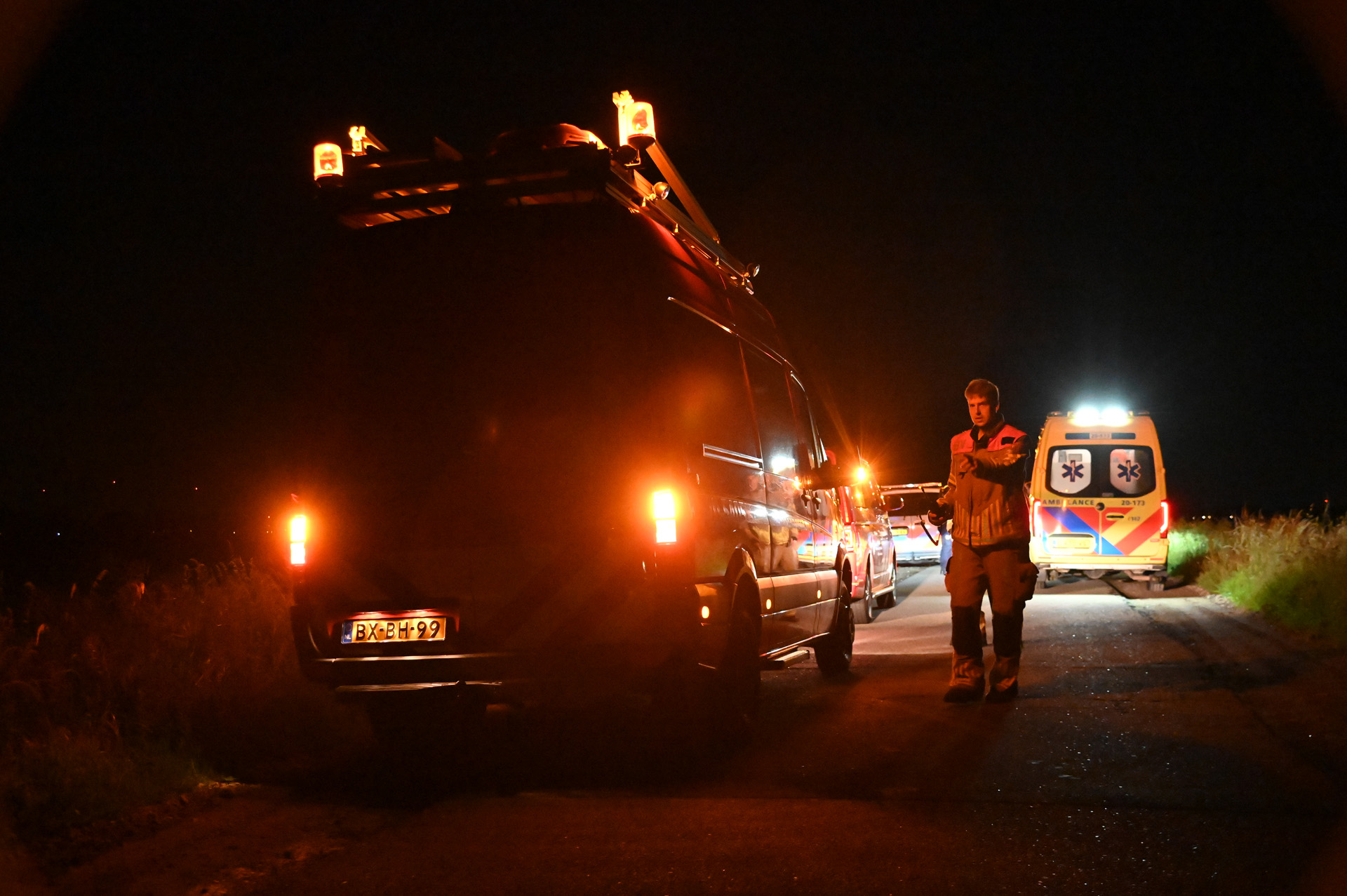 Auto op z’n kop in sloot, hulpdiensten massaal uitgerukt