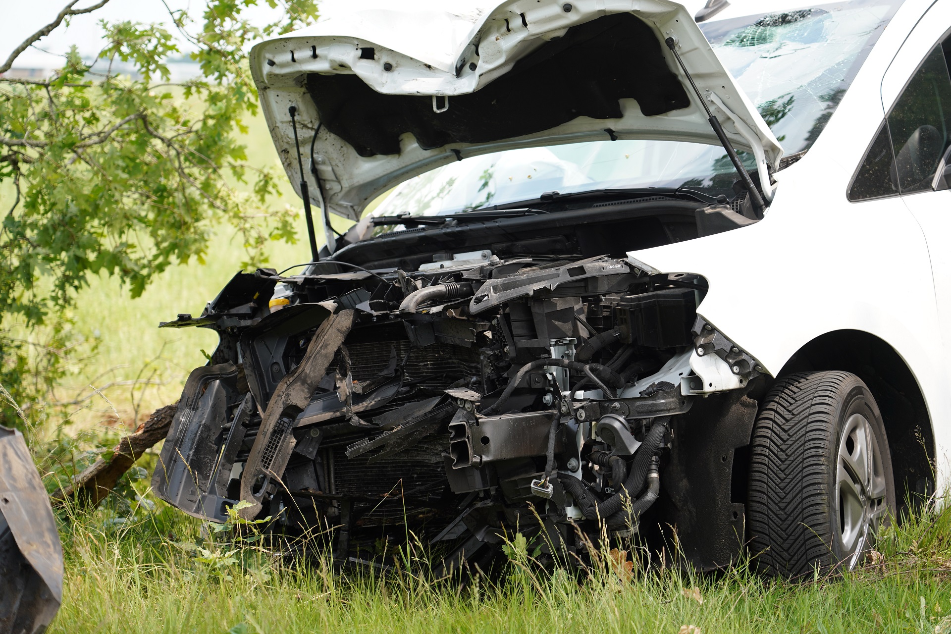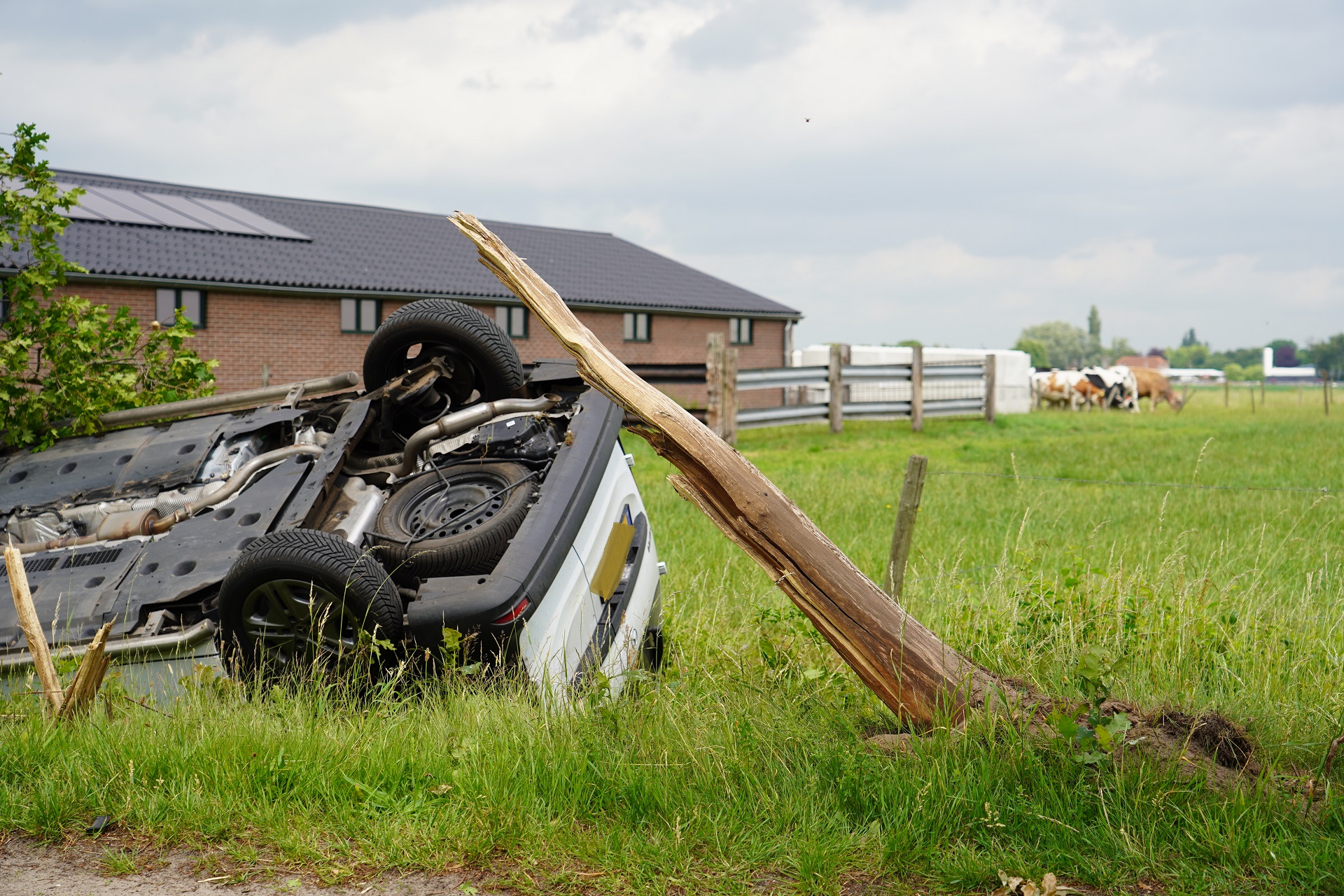 Automobiliste schrikt van spin, rijdt boom uit de grond en crasht in sloot