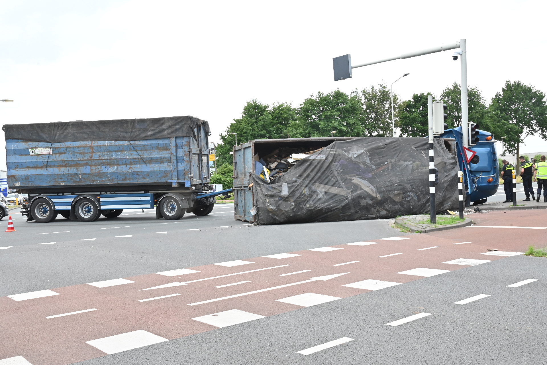 Hoe het voertuig kon kantelen is nog niet bekend. De chauffeur kwam met de schrik vrij en raakte niet gewond.