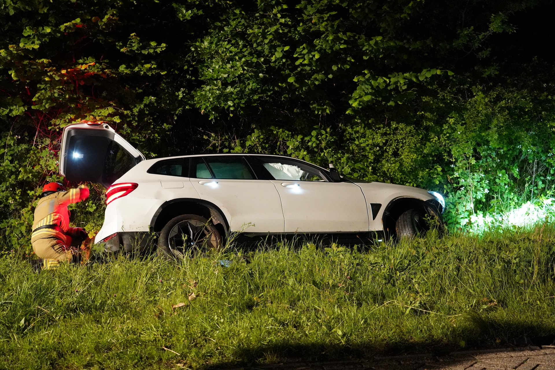 De brandweer van Rijen verleende assistentie en schakelde de stroom van het elektrische voertuig uit. De auto raakte zwaar beschadigd.
