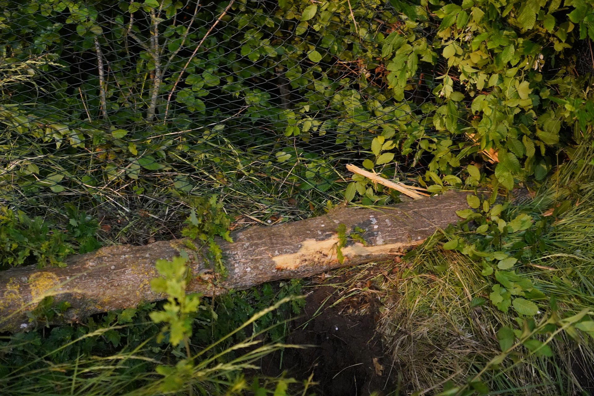 Auto vliegt uit de bocht en rijdt boom uit de grond