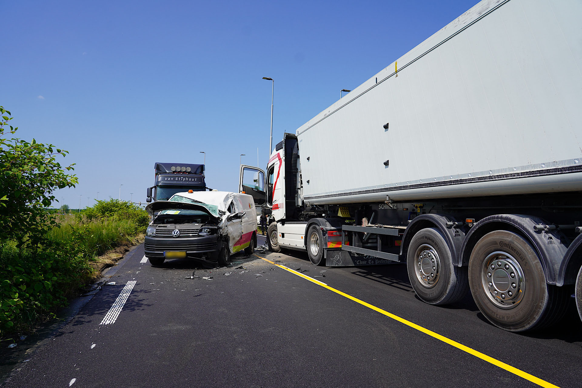 Beide voertuigen raakten zwaar beschadigd, vooral het busje. De weg werd tijdelijk afgesloten en het verkeer dat vast kwam te staan, werd door de politie omgeleid. De werkzaamheden aan de Burgemeester Letschertweg, die sinds 2 juni plaatsvinden, zouden mogelijk hebben bijgedragen aan het incident. De weg is momenteel aangepast vanwege de asfaltvernieuwing en blijft open voor verkeer in twee tegengestelde rijstroken. De werkzaamheden duren tot en met 11 juli.