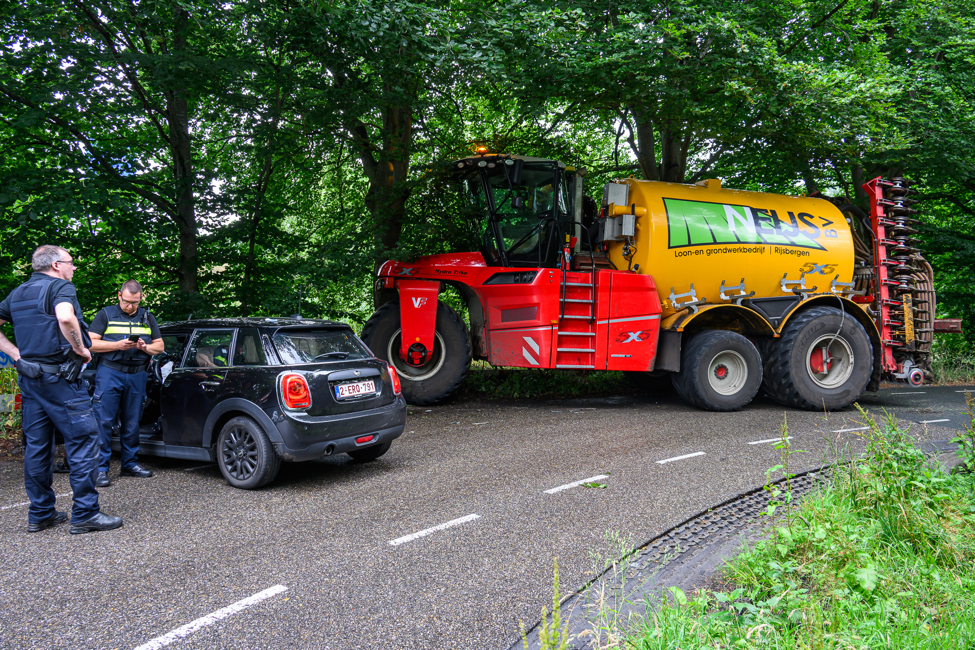 Het ongeluk vond plaats rond 10.25 uur. Meerdere politiewagens kwamen ter plaatse. De auto liep flinke schade op aan de voorzijde, maar de bestuurster bleef ongedeerd. Ook de bestuurder van het landbouwvoertuig, een mestinjecteur, bleef fysiek ongedeerd.